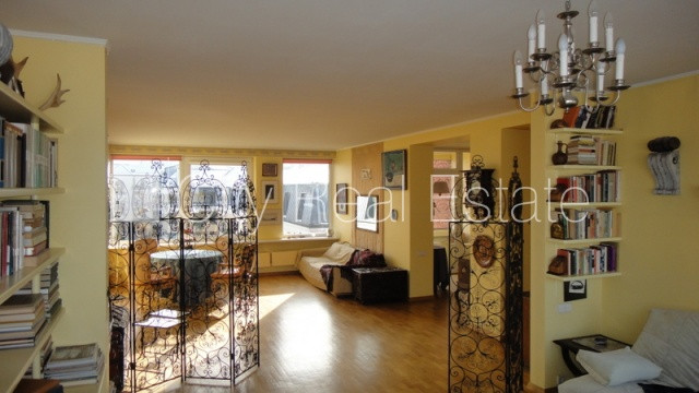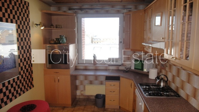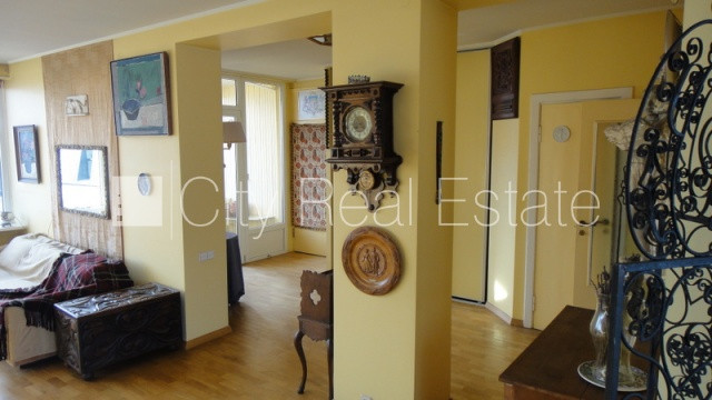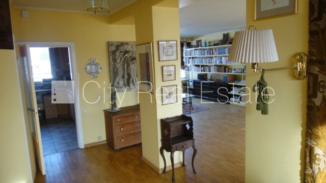 Labiekārtots apzaļumots pagalms, slēgts pagalms, teritorijas iebrauktuves vārti aprīkoti ar automatizētu atvēršanās un aizvēršanās sistēmu, vieta automašīnai, apsargāts pagalms, objektu apsargā fiziskā apsardze, ir lifts, kāpņu telpa pēc kosmētiskā remonta, lodžija 4 m2, logi vērsti mājas abās pusēs, virtuve 10 m2, palīgtelpa, lielie skatlogi, plastikāta stikla pakešu logi, lamināta parketa grīda, parketa grīda, sanitārais mezgls atsevišķs, vanna, dušas kabīne, CITY REAL ESTATE ID - 429314