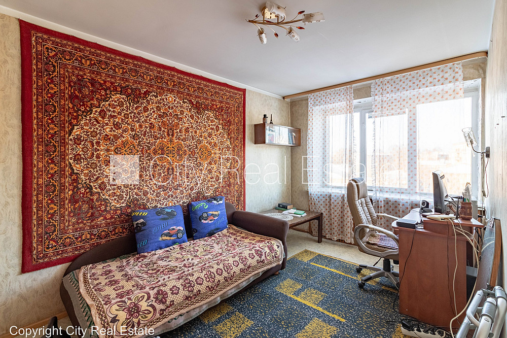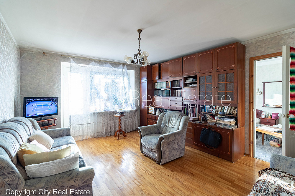 Fasādes māja, labiekārtota apzaļumota teritorija, vieta automašīnai, balkons, istabas izolētas 2 gab., viesistaba 20 m2, virtuve 7 m2, centrālā apkure, dubultās metāla durvis , izlīmētas tapetes, paklāja grīdas segums, parketa grīda, flīžu grīdas segums, sanitārais mezgls atsevišķs, vanna, antikvāras mēbeles, dīvāns, gulta , divguļamā gulta, virtuves galds, datorgalds, krēsli, vienvietīgais atpūtas krēsls, skapis, drēbju skapis, trauku skapis, kumode, spogulis, ledusskapis, cepeškrāsns, gāzes plīts, mikroviļņu krāsns, veļas mašīna, internets, slēgta kāpņu telpa, kāpņu telpā koda atslēga, CITY REAL ESTATE ID - 517897