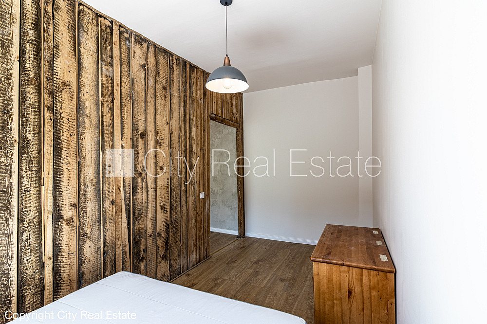 Fasādes māja, renovēta māja, bruģēts piebraucamais ceļš, viena istaba caurstaigājama, virtuve, centrālā apkure, plastikāta stikla pakešu logi, krāsotas sienas, lamināta parketa grīda, flīžu grīdas segums, sanitārais mezgls apvienots, vanna, iebūvēta virtuves iekārta, divguļamā gulta, galds, krēsli, ledusskapis, elektriskā plīts, tvaika nosūcējs, veļas mašīna, internets, kabeļtelevīzija, kāpņu telpā koda atslēga, CITY REAL ESTATE ID - 516681