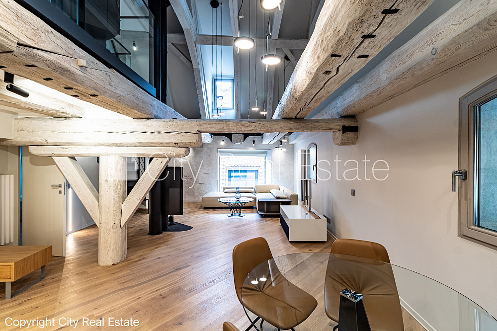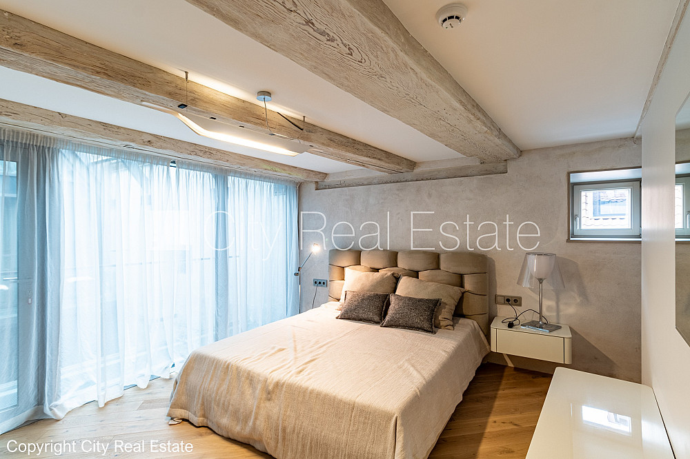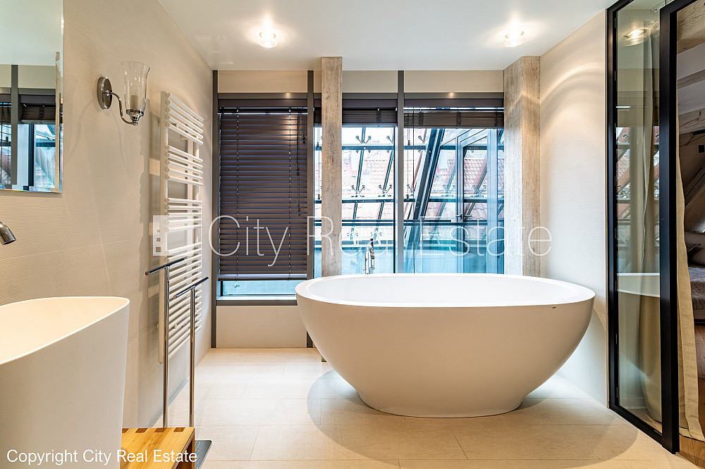 Fasādes māja, restaurēta māja, nomainītas inženierkomunikācijas, mainīts Jumta segums, dzelzsbetona starp stāvu pārsegumi, viena kvadrātmetra apsaimniekošanas maksa mēnesī 0,6 EUR, bruģēts piebraucamais ceļš, ieeja no ielas, luksuss apartamenti , ir lifts, balkons, logi vērsti mājas abās pusēs, plašs skats no loga, gaisa ventilācijas sistēma, gaisa kondicionēšanas sistēma, mājā mainīta jauna elektroinstalācija, mājā mainītas kanalizācijas caurules, guļamistabu skaits 3 gab., trīsstāvīgs, studio tipa, virtuve apvienota ar istabu, kamīns, automatizēta apkures sistēma, apkures skaitītāji, individuāla apkures sistēmas uzskaite, pārplānots, pilnā apdare, apsildāma grīda vannas istabā, koka stikla pakešu logi, metāla durvis, parketa grīda, flīžu grīdas segums, trīs sanitārie mezgli, vanna, dušas kabīne, iebūvēta virtuves iekārta, stūra dīvāns, divguļamā gulta, galds, virtuves galds, ledusskapis, trauku mazgājamā mašīna, elektriskā plīts, indukcijas plīts, cepeškrāsns, veļas mašīna, kāpņu telpā koda atslēga, atbrīvots, stratēģiski izdevīga vieta, CITY REAL ESTATE ID - 514647