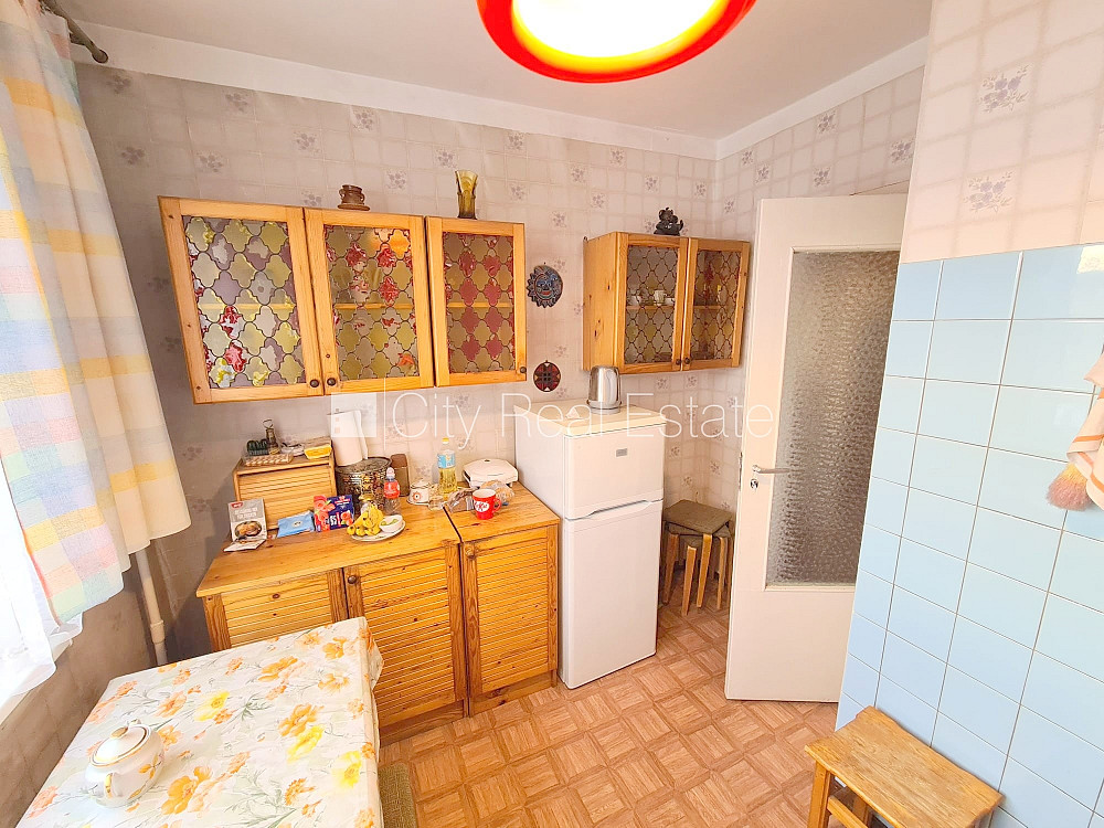 Fasādes māja, ieeja no pagalma, ir lifts, kāpņu telpa pēc kosmētiskā remonta, lodžija, logi vērsti uz pagalma pusi, istaba izolēta, virtuve, centrālā apkure, plastikāta stikla pakešu logi, izlīmētas tapetes, linoleja grīdas segums, sanitārais mezgls atsevišķs, vanna, tualete, iebūvēta virtuves iekārta, slēgta kāpņu telpa, atbrīvo pēc nepieciešamības, reģistrēts zemesgrāmatā, CITY REAL ESTATE ID - 514893