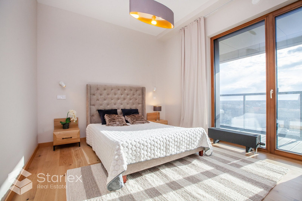 Dzīvoklis tiek pārdots ar pelēko apdari, bildes ir vizualizācijas, kas ļaus Tev plānot un iedvesmoties, dodot iespēju radīt savu lielisko dizainu un veidolu. Atļaujoties to vizualizēt, Tevi sagaidīs lieliska viesistaba, kas apvienota ar virtuves zonu, bet no tās logi paver burvīgu skatu uz Daugavu un Vecpilsētu. Koka iekšdurvis. Vannas istabās varētu būt apsildāmās grīdas. Griestu augstums - 2,90m. Divas izolētas guļamistabas. Galvenajā guļamistabā ir sava vannas istaba un pa logiem varēsi baudīt rīta sauli, kas dalīsies ar Tevi savā saulrietainajā smaidā. Šī dzīvokļa ievērojamākā rozīnītes ir tās divas terasītes, kurās siltākos laikapstākļos varēsi lēzeni noraudzīties galvaspilsētas dienas sākumā vai tās noslēgumā.