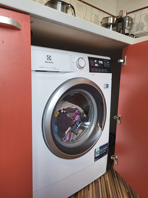 - Iebūvēta virtuve - sadzīves tehnika iegādāta mazāk nekā pirms gada, viss ar garantiju. Jums paliks trauku mazgājamā un veļas mazgājamā mašīna, tvaika nosūcējs, elektriskā keramikas plīts (par pārējo var vienoties).