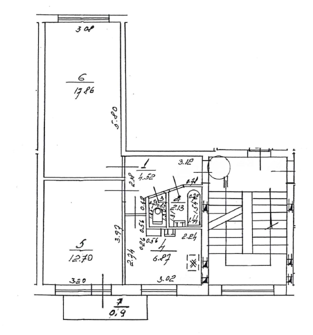 Kāpņu telpā PVC logi, durvis ar čipu, plānots kosmētiskais remonts.