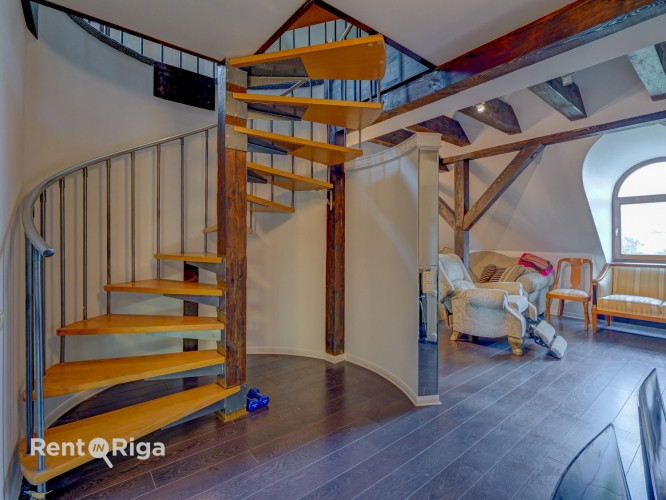 Izsmalcināts divlīmeņu dzīvoklis renovētā ēkā pašā Rīgas sirdī. Tiešs skatu uz Brīvības pieminekli un gleznainajiem pilsētas parkiem. Ēka celta 19. gadsimta beigās pēc arhitekta J. F. Baumaņa projekta un ir viena no Rīgas atpazīstamākajām celtnēm, kurai saglabāts arhitektoniskais šarms un pievienots moderns komforts, tai skaitā jauns lifts un grezna kāpņutelpa. Dzīvoklis atrodas augšējos stāvos, virs ēkas dzegas, ļaujot baudīt unikālu skatu uz parkiem, pilsētas torņiem un centra arhitektūru. Pirmajā līmenī izvietota viesistaba ar virtuves zonu, izolēta istaba, priekšnams un sanmezgls. Augšstāvā guļamistabas zona ar savu sanmezglu, un izeja uz balkonu. Dzīvoklis tiek pārdots ar visām mēbelēm un sadzīves tehniku gatavs tūlītējai apdzīvošanai. Mājai ir slēgts pagalms. Biezās mūra sienas nodrošina teicamu siltumnoturību ziemā un patīkamu vēsumu vasarā, kā arī efektīvu skaņas izolāciju. Lieliska infrastruktūra- viss, kas nepieciešams ērtai dzīvei, atrodas rokas stiepiena attālumā: iepirkšanās, kafejnīcas, restorāni, teātri, medicīnas un izglītības iestādes. Apkārt atrodas trīs no Rīgas skaistākajiem parkiem Esplanāde, Bastejkalns un Vērmanes dārzs. Sabiedriskais transports pieejams tieši pie ieejas ēkā.