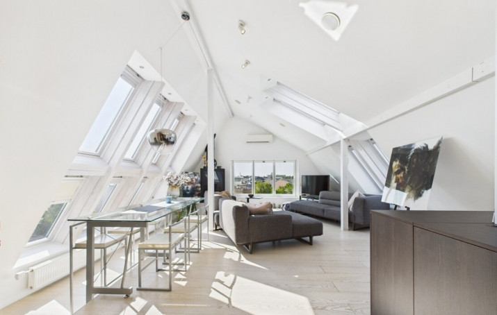 Izsmalcināts plašs dizaina dzīvoklis ar panorāmas skatu Rīgas klusajā centrā Dzirnavu ielā starp Antonijas un Strēlnieku ielu Dzīvokļa kopējā platība 149 m Šis ekskluzīvais 6. stāva mansarda dzīvoklis atrodas vienā no prestižākajiem Rīgas rajoniem klusajā centrā, kur saplūst vēsturiskā arhitektūra ar mūsdienīgu dzīves kvalitāti. Dzīvoklis izvietots vēsturiskā ēkā ar liftu, nodrošinot gan ērtību, gan privātumu. Priekšrocības: Augstie griesti un stilīgs interjers ar dizaina elementiem; Panorāmas un jumta logi bagātīgs dabīgās dienas gaismas daudzums visa gada garumā; Skats uz pilsētas jumtiem, torņiem, Pārdaugavu un Rīgas centru; Kondicionieris katrā telpā, vannas istabā siltās grīdas, autonomā gāzes apkure; Pilnībā mēbelēts un gatavs tūlītējai apdzīvošanai. Telpu plānojums: Plaša viesistaba ar panorāmas logiem, ēdamzonu un atpūtas zonu; Moderna virtuves zona ar iebūvētu tehniku; Divas guļamistabas ar iebūvētiem skapjiem un plašiem jumta logiem; Divas vannas istabas viena ar vannu, otra ar dušu Garderobes telpa; Noliktava.