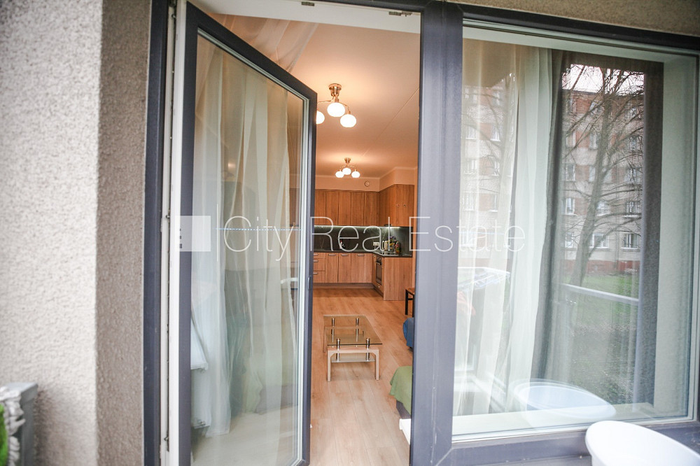 Jaunceltne, labiekārtota apzaļumota teritorija, slēgta teritorija, vieta automašīnai, pagalmā bērnu spēļu laukums, terase, studio tipa, virtuve apvienota ar viesistabu, palīgtelpas pagrabstāvā 2 m2, radiatori ar termoregulatoriem, pilnā apdare, apsildāma grīda vannas istabā, sanitārais mezgls apvienots, dušas kabīne, iebūvēta virtuves iekārta, ledusskapis, elektriskā plīts, cepeškrāsns, veļas mašīna, diennakts videonovērošana, video domofons, kāpņu telpā koda atslēga, stratēģiski izdevīga vieta, CITY REAL ESTATE ID - 516187