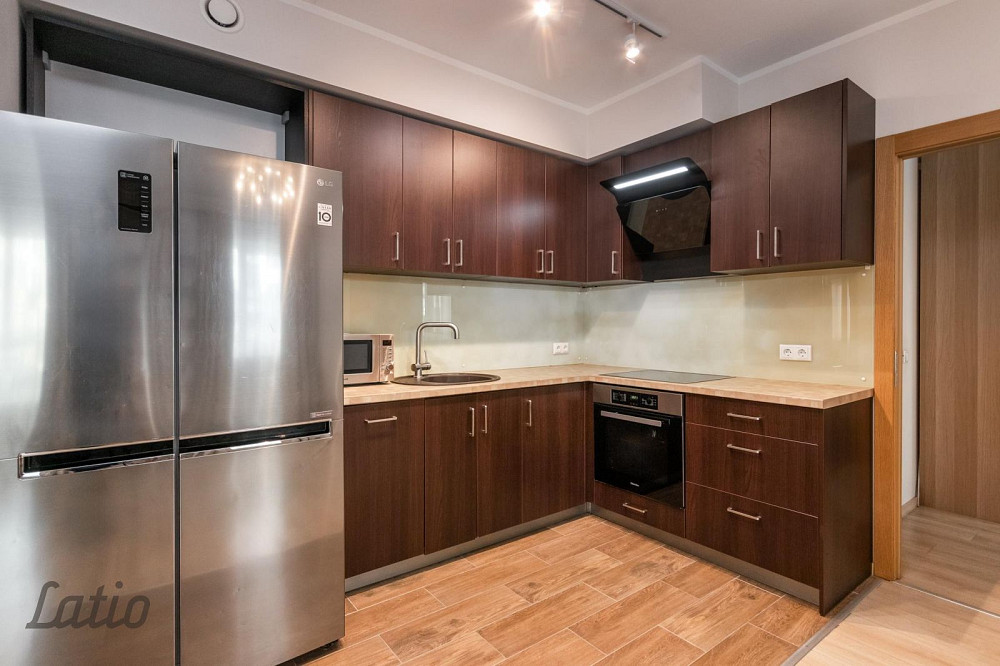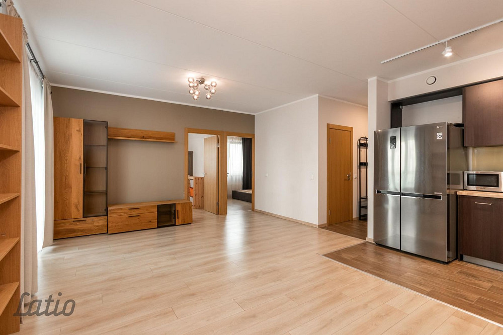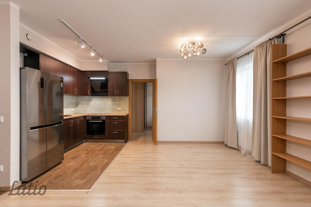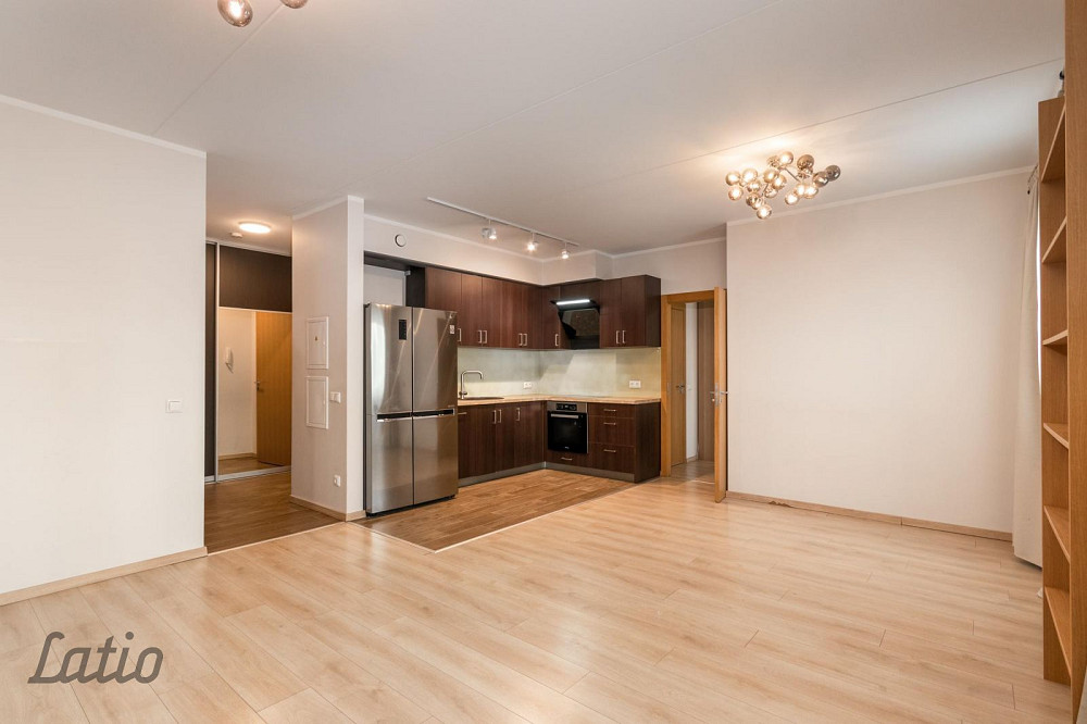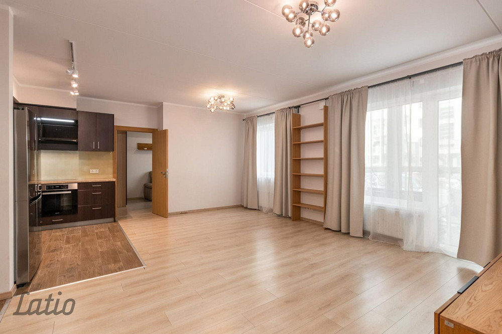 o) gaiša viesistaba 33,7 m2, kas apvienota ar virtuves daļu. Virtuvē iebūvēta virtuves iekārta ar sadzīves tehniku, no viesistabas ir izeja uz balkona 3,8 m2, koridora daļā ir liels iebūvējamais skapis.