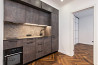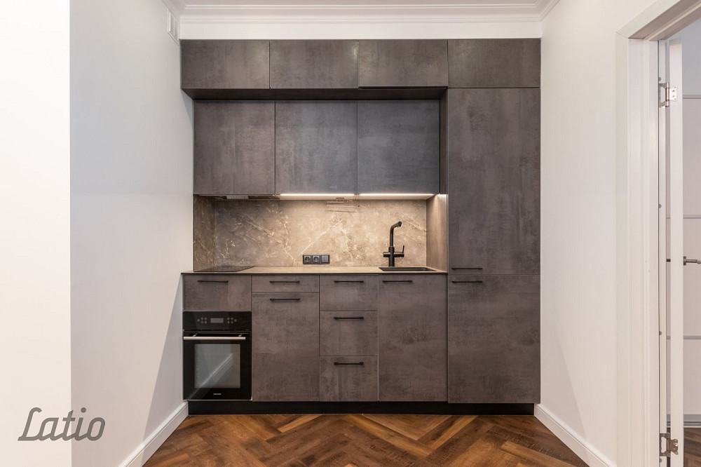 Dzīvoklī veikts svaigs remonts un tas ir pilnībā gatavs dzīvošanai. Viesistaba ir apvienota ar virtuvi, kas aprīkota ar iebūvētu virtuves iekārtu un sadzīves tehniku Whirlpool indukcijas plīts virsmu, LG ledusskapi.
