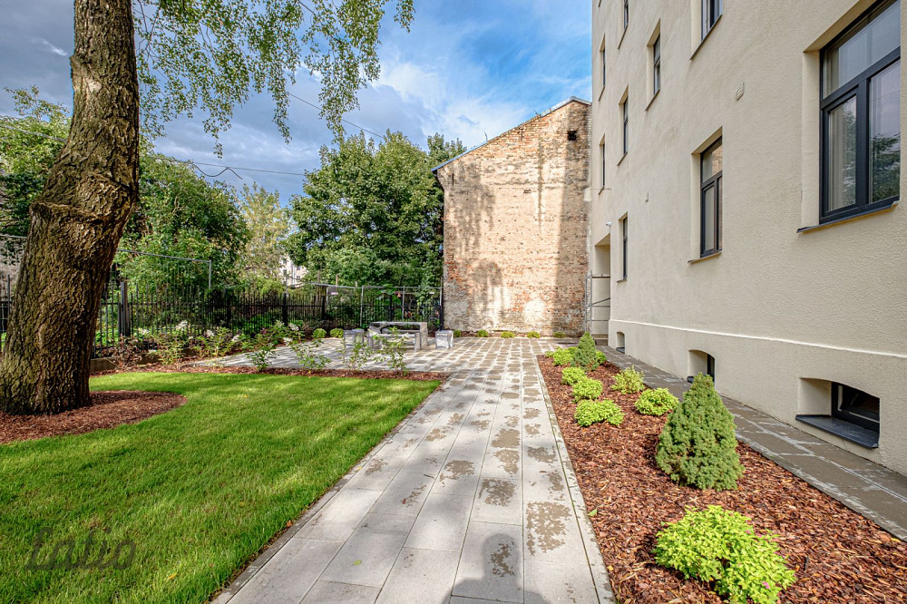 Pārdod pilnībā mēbelētu, ar sadzīves tehniku un sadzīves priekšmetiem aprīkotu dzīvokli renovētā pirmskara laika mūra namu kompleksa Krāsotāju ielā 13 pagalma ēkā.