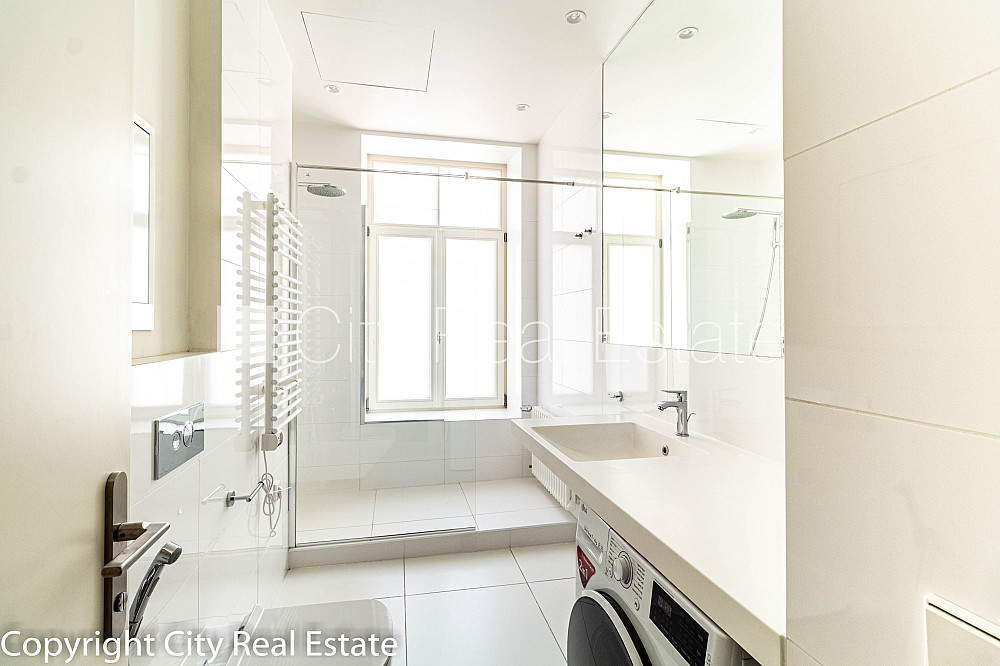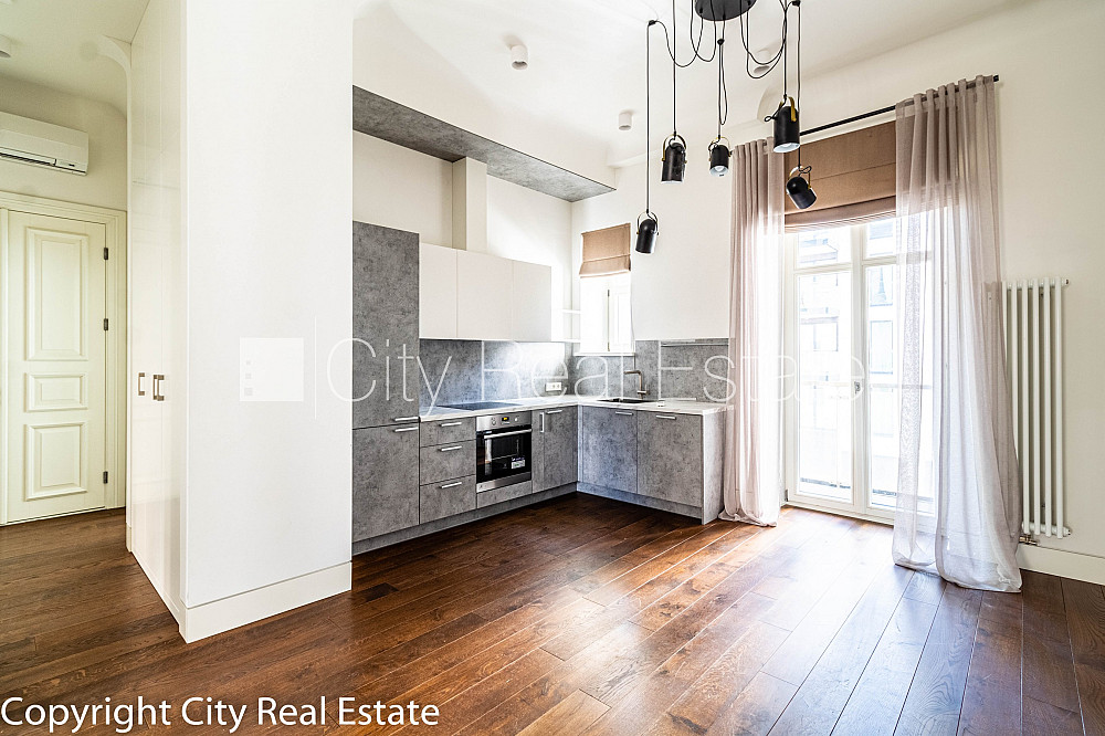 Projekts - J5, fasādes māja, renovēta māja, labiekārtots apzaļumots pagalms, bruģēts piebraucamais ceļš, slēgts pagalms, iespēja nomāt autostāvvietu, pazemes autostāvvieta, ieeja no ielas, luksuss apartamenti , ir lifts, guļamistabu skaits 1 gab., studio tipa, virtuve apvienota ar viesistabu, apkures skaitītāji, individuāla apkures sistēmas uzskaite, apsildāma grīda vannas istabā, koka stikla pakešu logi, metāla durvis, jauna santehnika, ozola koka grīdas segums, flīžu grīdas segums, sanitārais mezgls apvienots, dušas kabīne, iebūvēta virtuves iekārta, iebūvēti sienas skapji, gaisa kondicionieris, ledusskapis, trauku mazgājamā mašīna, indukcijas plīts, cepeškrāsns, veļas mašīna, internets, diennakts videonovērošana, video domofons, slēgta kāpņu telpa, kāpņu telpā koda atslēga, atbrīvots, stratēģiski izdevīga vieta, CITY REAL ESTATE ID - 431395