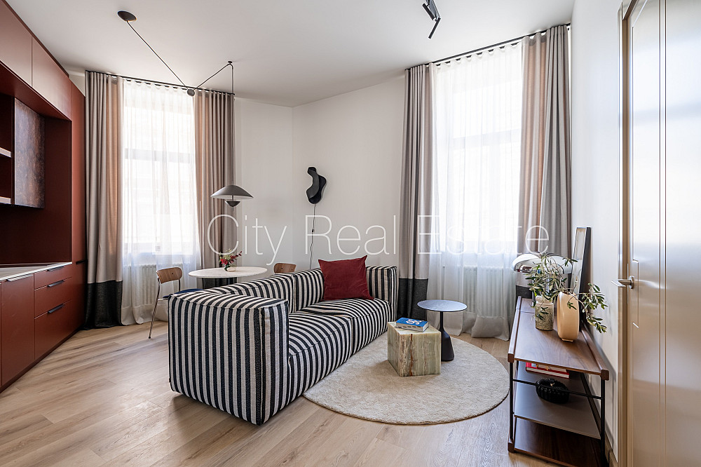 Projekts - Place 4, fasādes māja, renovēta māja, ir lifts, kāpņu telpa pēc kapitālā remonta, logi vērsti uz ielas pusi, istabas izolētas 1 gab., studio tipa, virtuve apvienota ar viesistabu, augstie griesti, radiatori ar termoregulatoriem, centrālā apkure, apkures skaitītāji, individuāla apkures sistēmas uzskaite, pilnā apdare, apsildāma grīda vannas istabā, koka stikla pakešu logi, parketa grīda, sanitārais mezgls apvienots, dušas kabīne, diennakts videonovērošana, video domofons, kāpņu telpā koda atslēga, projektā vēl pieejami dzīvokļi, stratēģiski izdevīga vieta, CITY REAL ESTATE ID - 517247