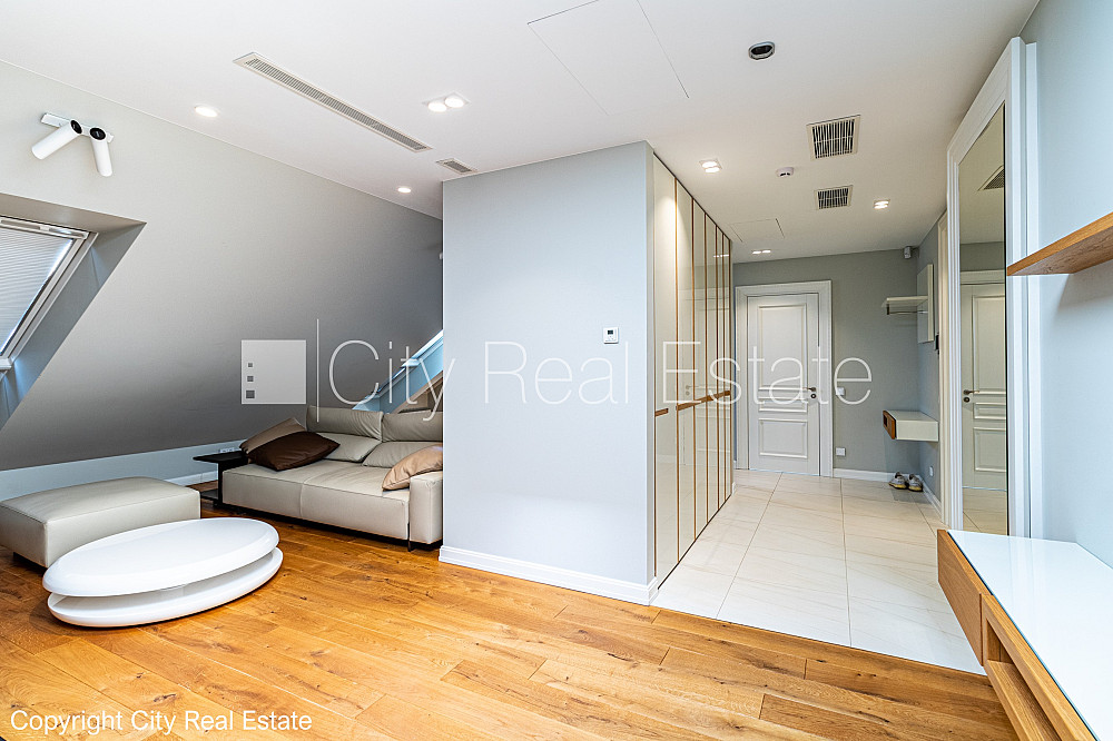 Renovēta māja, slēgts pagalms, iespēja nomāt autostāvvietu, apsargāta autostāvvieta, apsargāts pagalms, ieeja no ielas un pagalma, luksuss apartamenti 92 m2, ir lifts, kāpņu telpa pēc kapitālā remonta, istabas izolētas, studio tipa, virtuve apvienota ar viesistabu, kamīns, centrālā apkure, pilnā apdare, ozola koka grīdas segums, vannas istabu skaits, vanna, dušas kabīne, iebūvēta virtuves iekārta, iebūvēti sienas skapji, dīvāns, divguļamā gulta, virtuves galds, krēsli, gaisa kondicionieris, ledusskapis, trauku mazgājamā mašīna, elektriskā plīts, kāpņu telpā koda atslēga, CITY REAL ESTATE ID - 514666