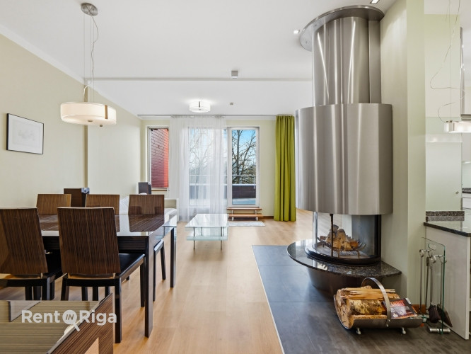 Pārdošanā plašs un kvalitatīvi izbūvēts 4 istabu dzīvoklis Šampēterī ar terasi. Dzīvokļa kopējā iekštelpu platība ir 112,4 m, papildus 15,2 m privāta terase. Plānojums - dzīvojamā zona apvienota ar virtuvi, trīs izolētas guļamistabas un divi sanmezgli, no kuriem viens aprīkots ar vannu, dušu un pirti. Dzīvoklis ir pilnībā aprīkots ar kvalitatīvām mēbelēm un sadzīves tehniku, kā arī dizaina kamīnu, iebūvētu mūzikas sistēmu un siltajām grīdām. Terase aprīkota ar apgaismojumu, mūzikas sistēmu un elektriski vadāmu markīzi. Īpašums atrodas klusā un zaļā apkaimē. Slēgta, sakopta teritorija ar bērnu rotaļu laukumu un dārzu. Papildus iespējams iegādāties 2 pazemes autostāvvietas ar elektroauto uzlādes iespēju.