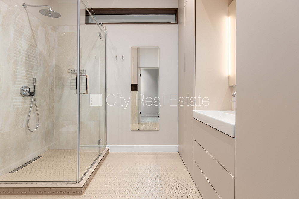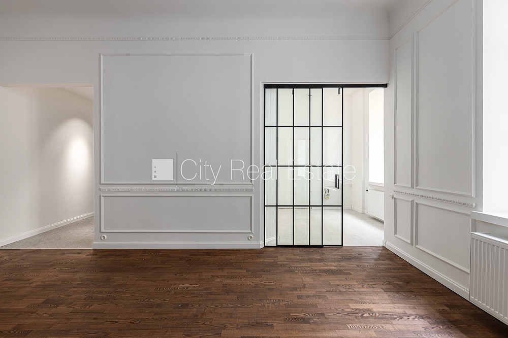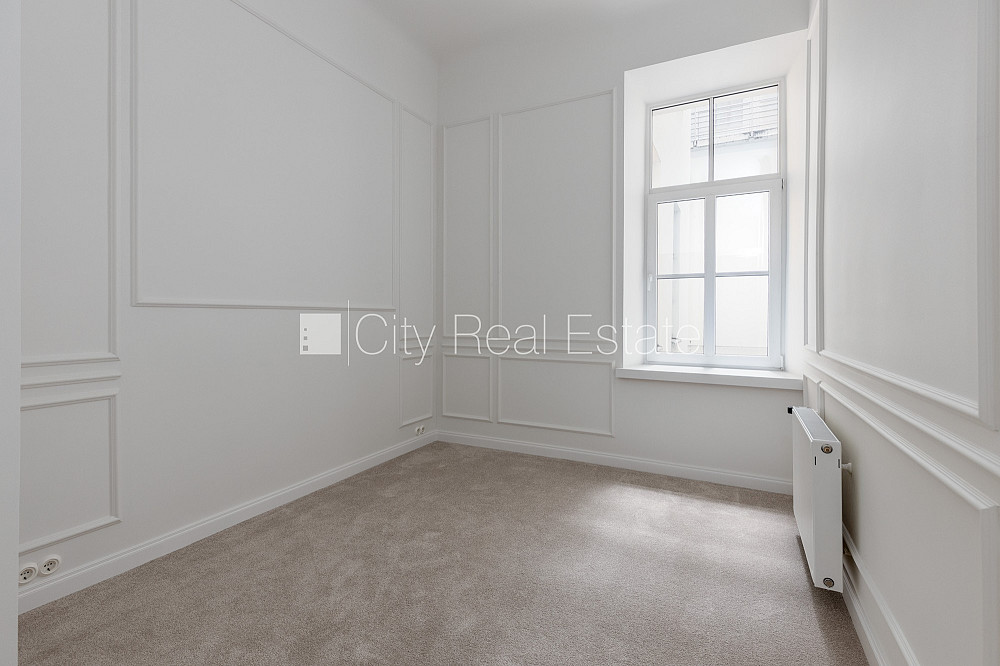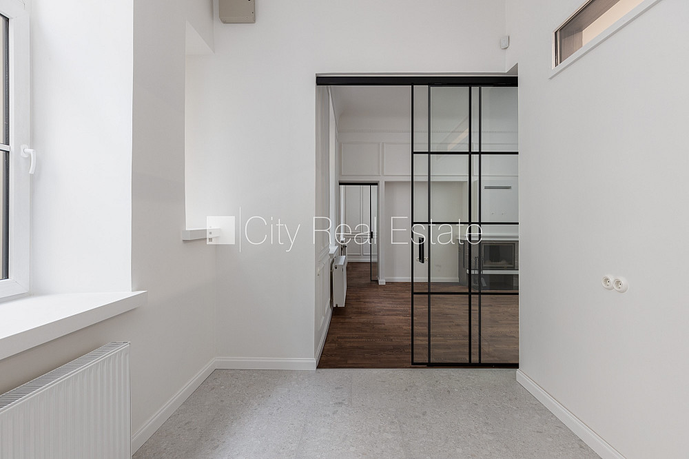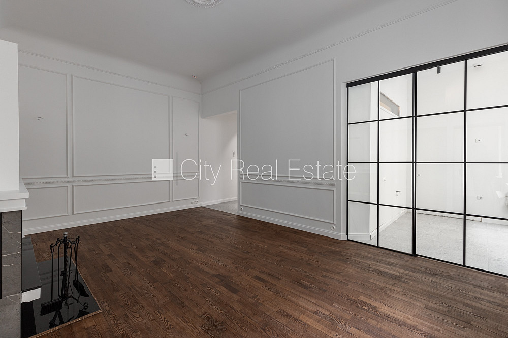 Pagalma ēka, slēgts pagalms, garāža vienai automašīnai, ieeja no ielas, teritorijas stāvlaukums noklāts ar bruģakmens segumu, kāpņu telpa pēc kapitālā remonta, logi vērsti uz pagalma pusi, istabas izolētas 2 gab., viesistaba, viena telpa caurstaigājama, virtuve, griestu augstums 4 m, augstie griesti, mainīti radiatori, kamīns, pilnā apdare, apsildāma grīda vannas istabā, parketa grīda, flīžu grīdas segums, sanitārais mezgls apvienots, dušas kabīne, bidē, kāpņu telpā koda atslēga, stratēģiski izdevīga vieta, CITY REAL ESTATE ID - 503349