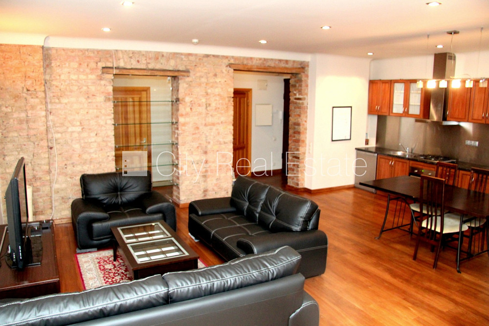 Pagalma ēka, slēgts pagalms, logi vērsti mājas abās pusēs, plašs skats no loga, guļamistabu skaits 2 gab., studio tipa, virtuve apvienota ar viesistabu, garderobe, halle, griestu augstums 3.60 m, kamīns, centrālā apkure, apsildāma grīda vannas istabā, koka stikla pakešu logi, metāla durvis, koka dēļu grīdas segums, flīžu grīdas segums, sanitārais mezgls apvienots, džakūzī vanna, trauku mazgājamā mašīna, signalizācija, dūmu detektors, kāpņu telpā koda atslēga, pārdod ar visu bildēs redzamo aprīkojumu, atbrīvo pēc nepieciešamības, reģistrēts zemesgrāmatā, stratēģiski izdevīga vieta, CITY REAL ESTATE ID - 424311