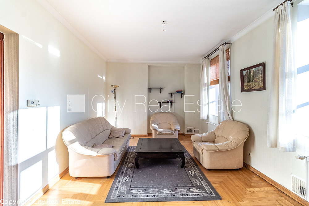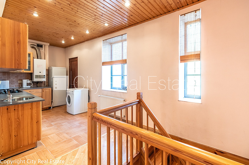 Zeme īpašumā, fasādes māja, renovēta māja, labiekārtota apzaļumota teritorija, slēgts pagalms, ieeja no ielas un pagalma, ir lifts, kāpņu telpa pēc kapitālā remonta, somu pirts, logi vērsti mājas abās pusēs, divstāvīgs, viesistaba, virtuve, palīgtelpa, divas ieejas, kamīns, gāzes apkure, apkures skaitītāji, individuāla apkures sistēmas uzskaite, divos līmeņos, pārplānots, pilnā apdare, metāla durvis, mainīta santehnika, parketa grīda, flīžu grīdas segums, divi sanitārie mezgli, dušas kabīne, stūra vanna, iebūvēta virtuves iekārta, iebūvēti sienas skapji, ledusskapis, trauku mazgājamā mašīna, cepeškrāsns, gāzes plīts, veļas mašīna, optiskais internets, slēgta kāpņu telpa, atbrīvots, līdz parkam, stratēģiski izdevīga vieta, līdz Vecrīgai, palīdzēsim nokārtot hipotekāro kredītu šī īpašuma iegādei, palīdzēsim iegūt Uzturēšanās atļauju Latvijā, CITY REAL ESTATE ID - 424515