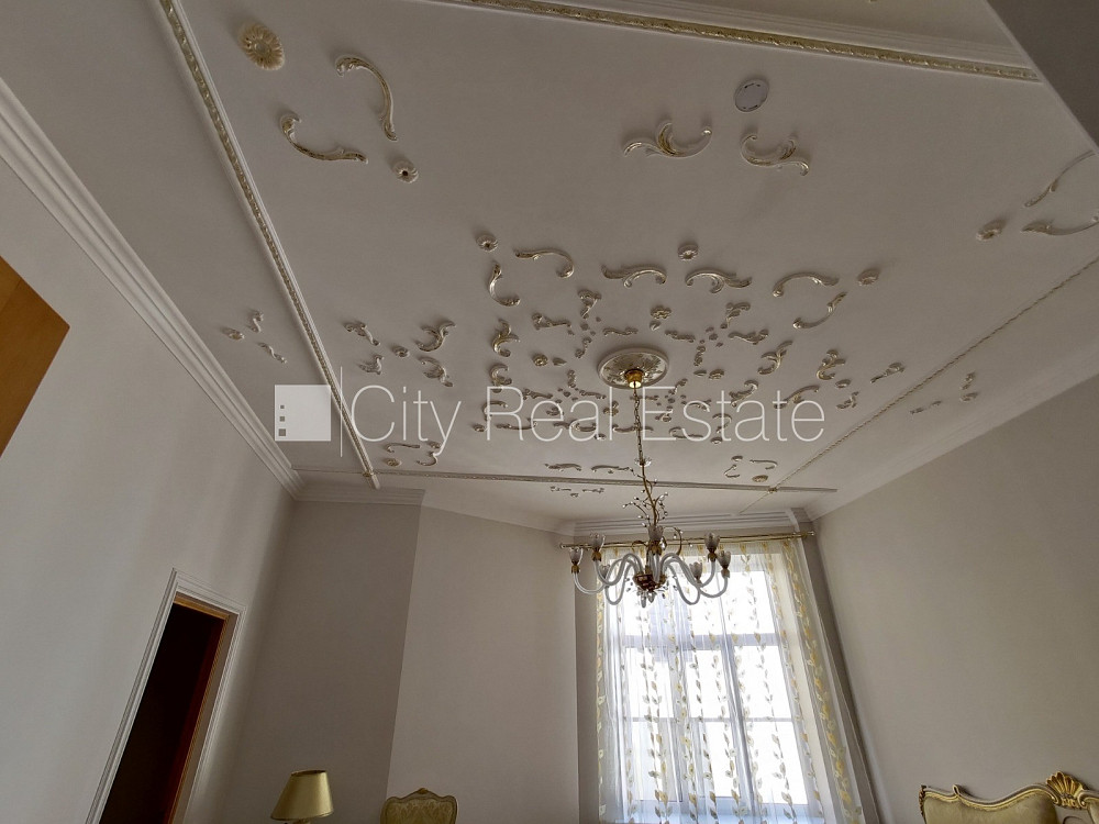 Zeme īpašumā, fasādes māja, renovēta māja, ķieģeļu mūra sienas, fasāde ar dekoratīvo apmetumu, labiekārtota apzaļumota teritorija, labiekārtots apzaļumots pagalms, vieta automašīnai, ieeja no ielas, luksuss apartamenti , sauna, logi vērsti mājas abās pusēs, guļamistabu skaits 4 gab., viesistaba 38,1 m2, virtuve, garderobe, halle 18 m2, augstie griesti, kamīns, gāzes apkure, apkures skaitītāji, individuāla apkures sistēmas uzskaite, iespēja pārplānot, pilnā apdare, koka stikla pakešu logi, krāsotas sienas, jauna santehnika, ozola koka grīdas segums, parketa grīda, flīžu grīdas segums, mainīta kanalizācijas sistēma, divi sanitārie mezgli, vanna, dušas kabīne, bidē, antikvāras mēbeles, iebūvēta virtuves iekārta, iebūvēti sienas skapji, dīvāns, gulta , divguļamā gulta, viesistabas galds, atpūtas krēsli, trīsvietīgais atpūtas krēsls, trīsdurvju skapis, klavieres, televizors, ledusskapis, trauku mazgājamā mašīna, elektriskā plīts, cepeškrāsns, tvaika nosūcējs, mikroviļņu krāsns, veļas mašīna, mājas kinozāle, optiskais internets, signalizācija, atbrīvots, reģistrēts zemesgrāmatā, līdz parkam 150 m, stratēģiski izdevīga vieta, CITY REAL ESTATE ID - 424778