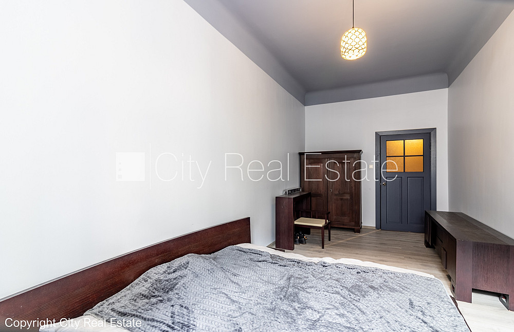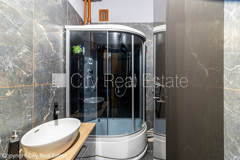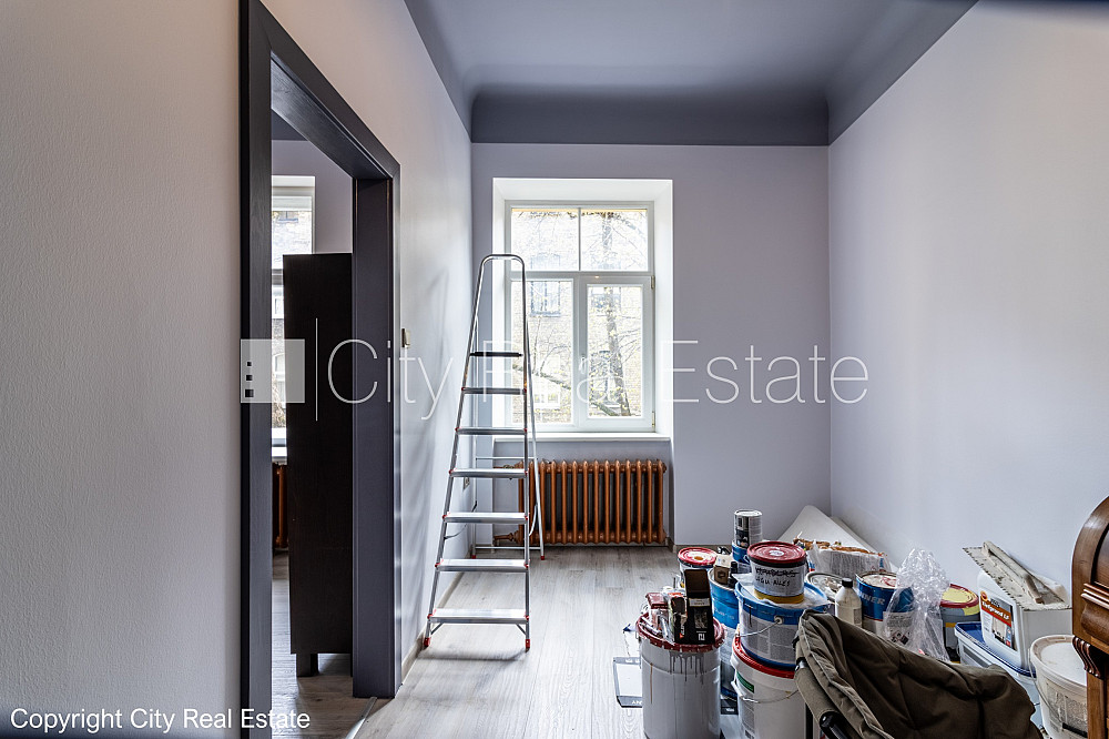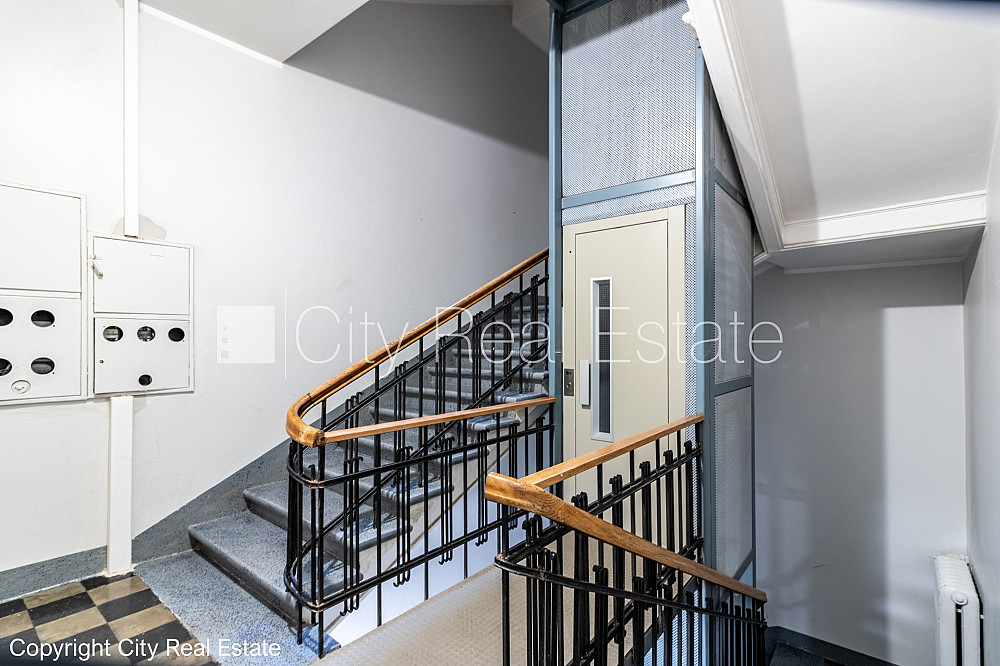 Zeme īpašumā, fasādes māja, renovēta māja, ieeja no ielas, ir lifts, kāpņu telpa pēc kosmētiskā remonta, logi vērsti uz pagalma pusi, istabas izolētas 2 gab., caurstaigājamas izolētas istabas, virtuve, atpūtas telpa, palīgtelpa, augstie griesti, centrālā apkure, koka stikla pakešu logi, lamināta parketa grīda, flīžu grīdas segums, sanitārais mezgls atsevišķs, dušas kabīne, iebūvēta virtuves iekārta, kāpņu telpā koda atslēga, atbrīvots, stratēģiski izdevīga vieta, CITY REAL ESTATE ID - 516250