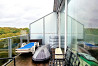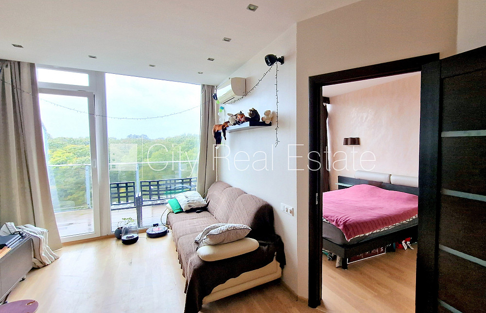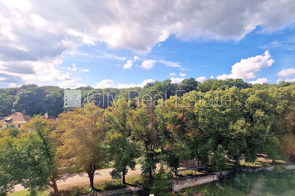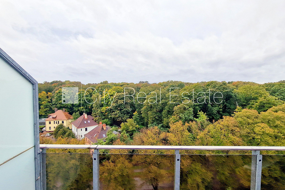 Zeme īpašumā, jaunceltne, labiekārtota apzaļumota teritorija, teritorijas iebrauktuves vārti aprīkoti ar automatizētu atvēršanās un aizvēršanās sistēmu, vieta automašīnai, pazemes autostāvvieta, ir lifts, terase 14 m2, logi vērsti uz parka pusi, plašs skats no loga, guļamistabu skaits 1 gab., studio tipa, virtuve apvienota ar viesistabu, augstie griesti, automatizēta apkures sistēma, pilnā apdare, lielie skatlogi, plastikāta stikla pakešu logi, parketa grīda, flīžu grīdas segums, sanitārais mezgls apvienots, vanna, iebūvēta virtuves iekārta, iebūvēti sienas skapji, dīvāns, divguļamā gulta, gaisa kondicionieris, ledusskapis, elektriskā plīts, cepeškrāsns, veļas mašīna, optiskais internets, diennakts videonovērošana, līdz parkam 50 m, stratēģiski izdevīga vieta, CITY REAL ESTATE ID - 513999