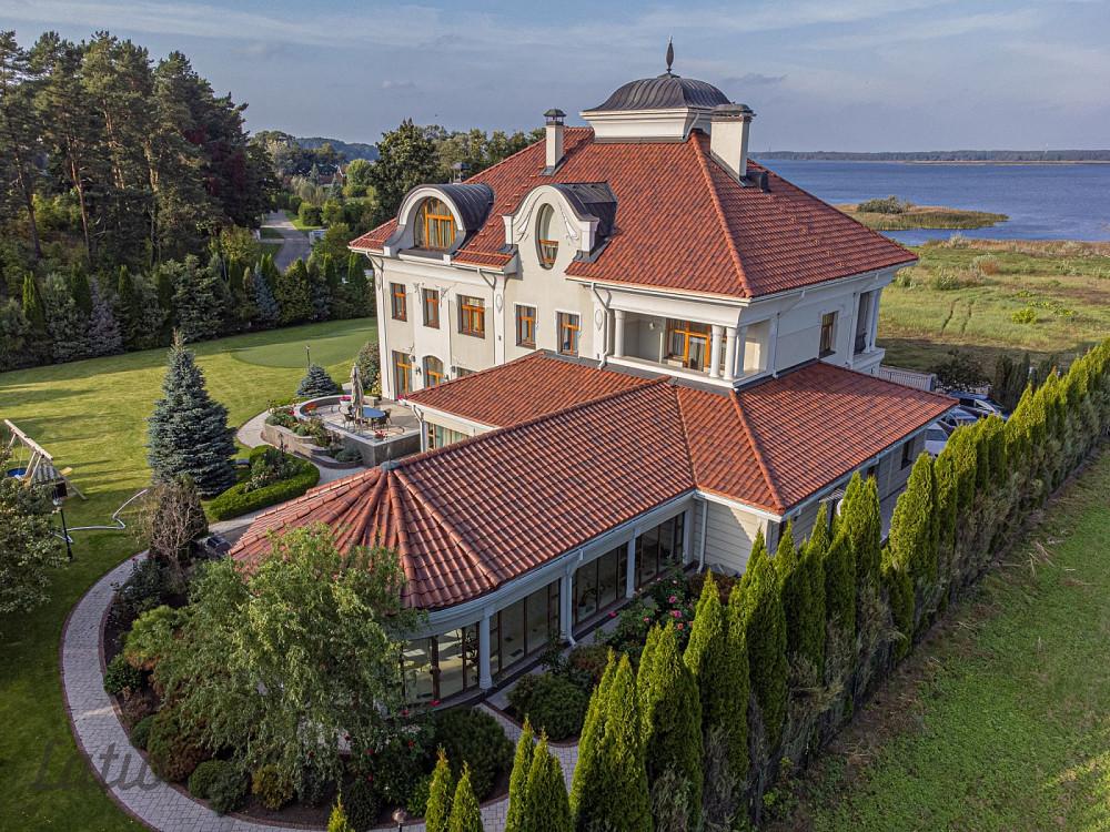 Ēkas platība 1098 m2, 11 istabas, no kurām 8 guļamistabas, viesistaba ar kamīnu, akvāriju, ēdamistaba, kabinets, četras vannas istabas, SPA atpūtas zona ar pirti, saunu, trenažieriem un ievērojama izmēra baseinu, kā arī garderobes telpas, palīgtelpas.