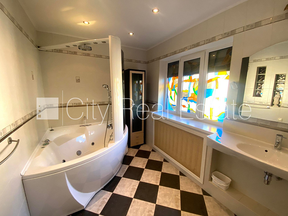 Privātmāja, keramzīta bloku sienas, fasāde ar dekoratīvo apmetumu, pagrabstāvā pieejama noliktava, labiekārtots apzaļumots pagalms, garāža divām automašīnām, krievu pirts, guļamistabu skaits 4 gab., viesistaba 23.9 m2, virtuve 20.3 m2, kabinets 10 m2, kamīns, gāzes apkure, apsildāma grīda virtuvē, apsildāma grīda koridorā, lamināta parketa grīda, divi sanitārie mezgli, džakūzī vanna, iebūvēta virtuves iekārta, iebūvēti sienas skapji, televizors, ledusskapis, trauku mazgājamā mašīna, cepeškrāsns, gāzes plīts, signalizācija, vietējā kanalizācija, pilsētas ūdens, līdz poliklīnikai 300 m, līdz skolai 300 m, līdz veikalam 200 m, līdz trolejbusa pieturai 200 m, CITY REAL ESTATE ID - 515621