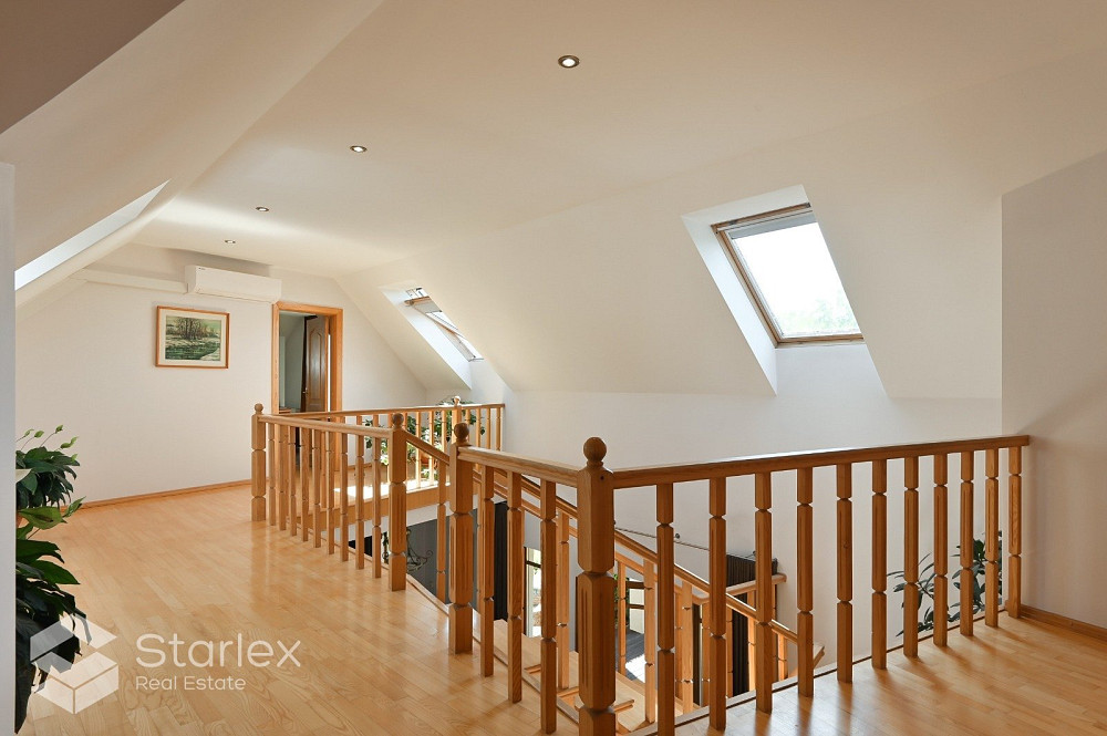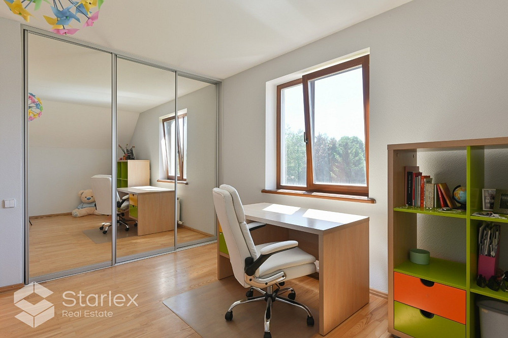 Plaša un iespaidīga privātmāja Bieriņos. Lielisks divstāvu nams un skaisti iekārtots dārzs. Garāža divām automašīnām.Pirmajā stāvā atrodas plaša viesistaba ar kamīnu, atsevišķa virtuve ar ēdamistabu, viesu tualete. Otrajā stāvā ir trīs guļamistabas un divas vannasistabas. Papildus pirmajā stāvā izvietots atsevišķs dzīvoklis ar savu ieeju 40 kvm platībā.Pirmajā stāvā ir arī pirts telpas un ļoti plaša garāža.Slēgts pagalms, automātiskie vārti, brīnišķīgs dārzs ar gadiem iekoptiem augiem un kokiem.Lieliska atrašanās vieta. 5 km gan Rīgas centrs, gan Lidosta Rīga. Netālu labas skolas un bērnudārzi.