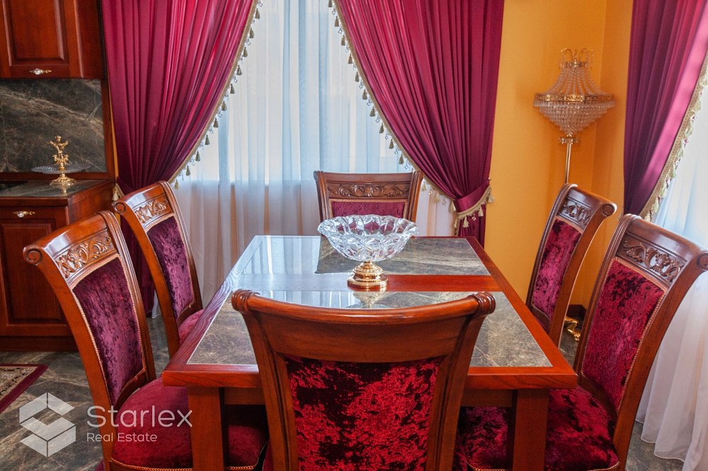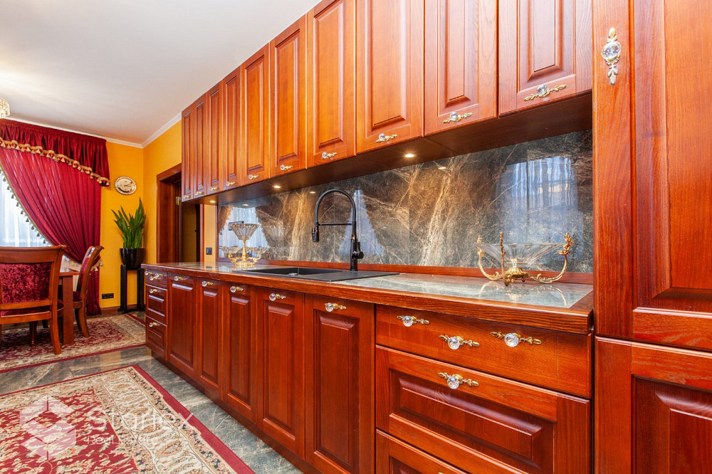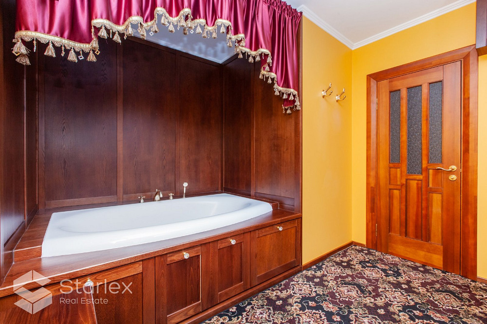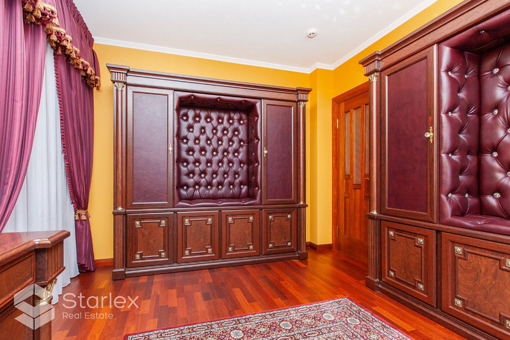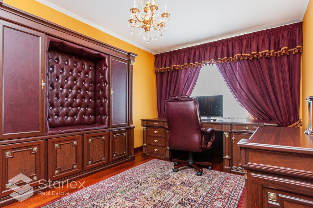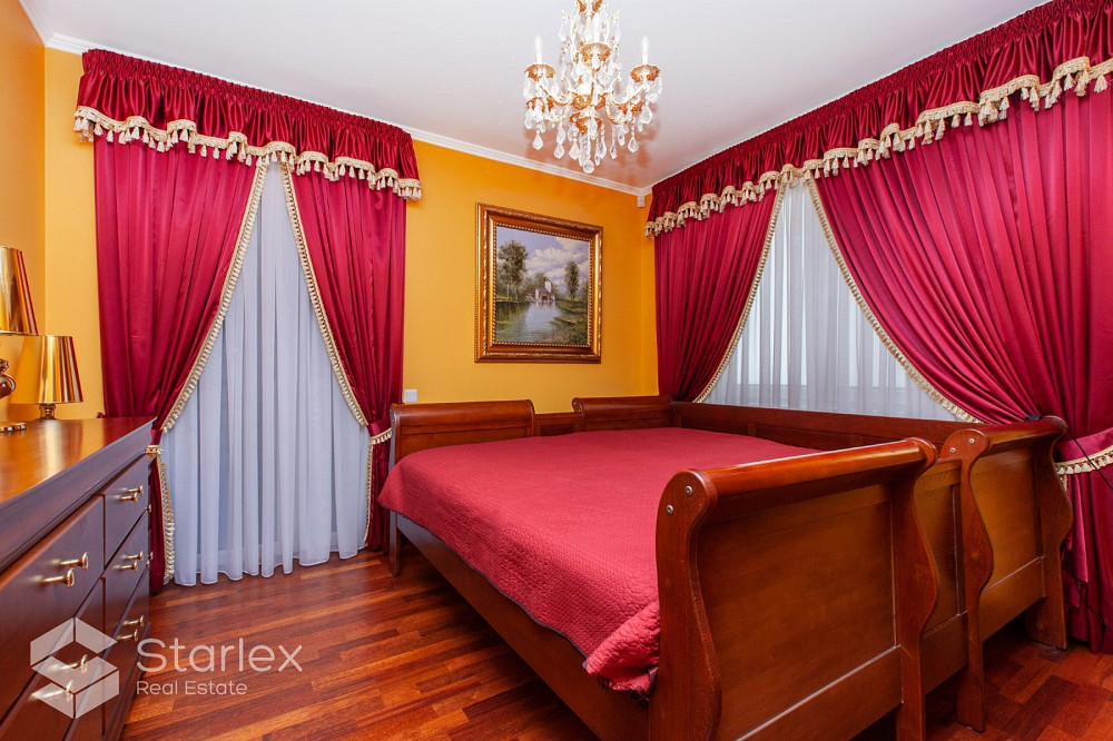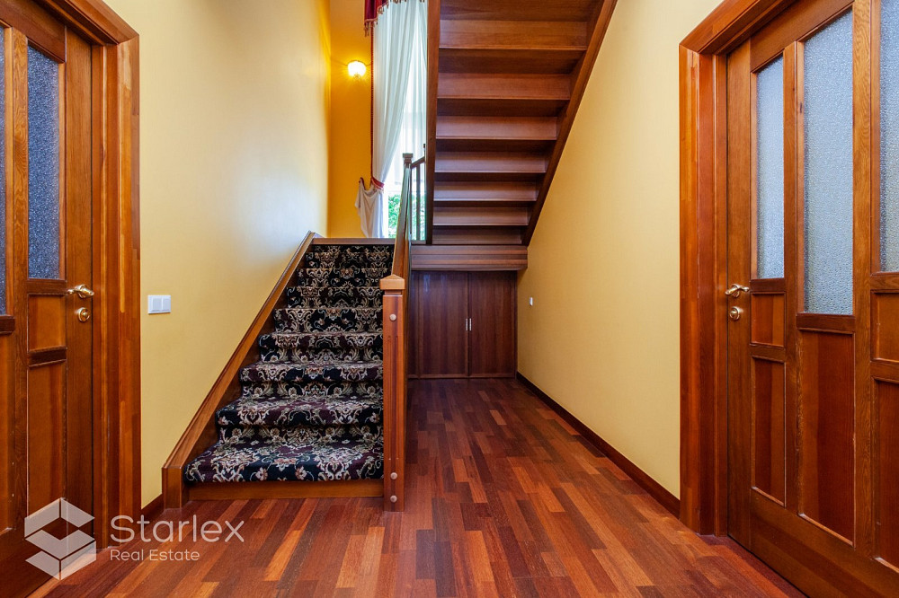 Tev paveras lieliska iespēja iegādāties savas jaunās mājas ar izsmalcinātu un pārdomātu interjeru, klusā, skaistā vietā, Imantā. Tā atrodas privātmāju rajonā, ar atsevišķu iebraucamo ceļu, kas paredzēts tikai dažām kaimiņu mājam. Būs sajūtas, ka atrodies tālu prom no pilsētas burzmas. Ēka celta ar augstu energoefektivitāti. Apkurei tiek izmantots zemes siltumsūknis, kas padara komunālos maksājumus ļoti izdevīgus. Ēkas kopējā platība ir 265m2. Papildus: 80m2 bēniņi, 25m2 stiklota terase, 10m2 pirts un zemes gabals 530m2. liels Iegādājoties māju Tu iegūsi:Dzelzbetona sienas un pārsegums, VELOX bloki un monolīta grīdas.Māja nodota ekspluatācijā 2011. gadā.Pamatīgi un kvalitatīvi siltināta māja.Masīvkoka apdare un trepes.Tarketa grīdas visās istabās.Griestu augstums 3 metri. Pilsētas ūdens ar savu filtrācijas sistēmu.Biokanalizācija.Pirmā stāva planojums: plaša virtuve, viesistaba, sanitārais mezgls, stiklota terase, garāža.Otrajā stāvā izvietotas 3 guļamistabas, garderobe, 2 sanmezgli. Guļamistabā sanmezgls ar vannu, otrs sanmezgls ar dušu, personīgais kabinets un trenažieru zāle.Gandrīz katrā istabā ir plaši skapji, kas veiksmīgi iestrādāti interjerā.Māja pilnībā mēbelēta un iekārtota.Mājas pagalmā iebraukšana caur elektriskajiem vārtiem. Iekšpagalmā izbūvēta krievu pirts.