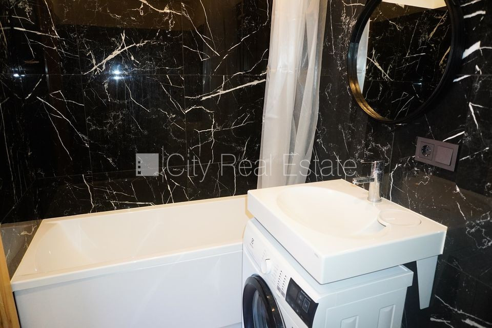 Pagalma ēka, labiekārtota apzaļumota teritorija, iežogota teritorija ar metāla sētu, teritorijas iebrauktuves vārti aprīkoti ar automatizētu atvēršanās un aizvēršanās sistēmu, bezmaksas stāvvieta pagalmā, ieeja no ielas, viena istaba izolēta, studio tipa, virtuve apvienota ar istabu, mainīti radiatori, gāzes apkure, gaisa kondicionieris ar siltuma funkciju, pilnā apdare, plastikāta stikla pakešu logi, krāsotas sienas, parketa grīda, sanitārais mezgls apvienots, dušas kabīne, iebūvēta virtuves iekārta, iebūvēti sienas skapji, trauku skapis, spogulis, gaisa kondicionieris, ledusskapis, trauku mazgājamā mašīna, elektriskā plīts, cepeškrāsns, tvaika nosūcējs, mikroviļņu krāsns, veļas mašīna, optiskais internets, namrunis, slēgta kāpņu telpa, CITY REAL ESTATE ID - 517899