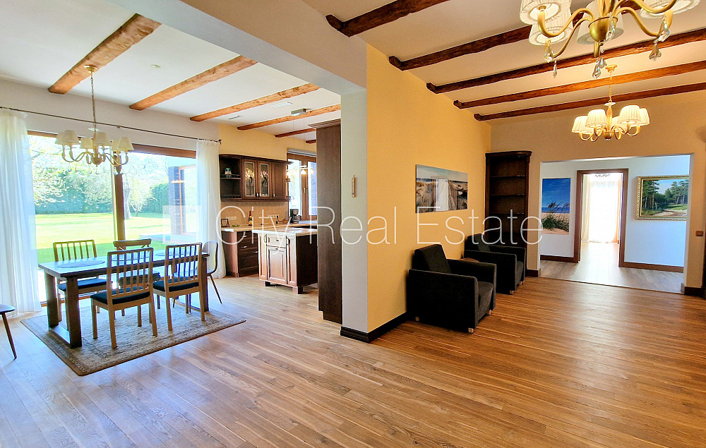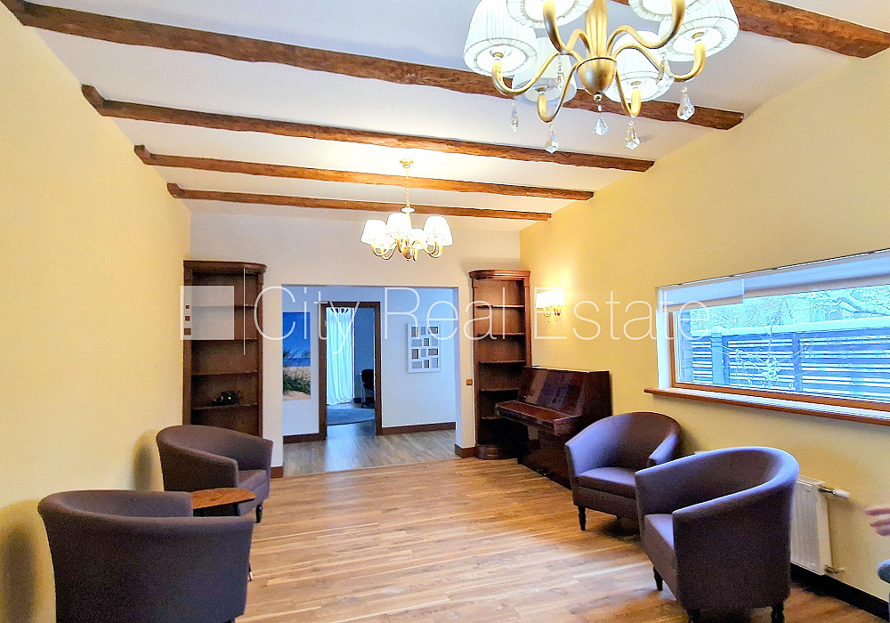 Zeme īpašumā, privātmāja, renovēta māja, nomainītas inženierkomunikācijas, labiekārtota apzaļumota teritorija 1750 m2, slēgta teritorija, teritorijas iebrauktuves vārti aprīkoti ar automatizētu atvēršanās un aizvēršanās sistēmu, apzaļumota teritorija ar jaunu kokaugu stādījumiem, luksuss apartamenti , pirmais stāvs ar dārzu, terase, logi vērsti mājas abās pusēs, plašs skats no loga, viesistaba, virtuve, atpūtas telpa, garderobe, kabinets, palīgtelpa, jauna ūdens cauruļu sistēma, mainīti radiatori, gāzes apkure, automatizēta apkures sistēma, apkures skaitītāji, individuāla apkures sistēmas uzskaite, pilnā apdare, lielie skatlogi, koka stikla pakešu logi, ozola koka grīdas segums, parketa grīda, trīs sanitārie mezgli, vanna, dušas kabīne, iebūvēta virtuves iekārta, iebūvēti sienas skapji, divguļamā gulta, galds, krēsli, atpūtas krēsli, trīsvietīgais atpūtas krēsls, gaisa kondicionieris, televizors, ledusskapis, trauku mazgājamā mašīna, elektriskā plīts, cepeškrāsns, veļas mašīna, optiskais internets, signalizācija, dūmu detektors, stratēģiski izdevīga vieta, palīdzēsim nokārtot hipotekāro kredītu šī īpašuma iegādei, komisijas maksa par starpniecības pakalpojumiem nav jāmaksā, CITY REAL ESTATE ID - 507246