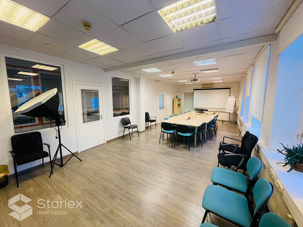 Ērtības: centrālapkure, sanitārais mezgls, ugunsdrošības signalizācija, ventilācija, kondicionieri, visas komunikācijas, PVC logi, virtuve, ledusskapis.