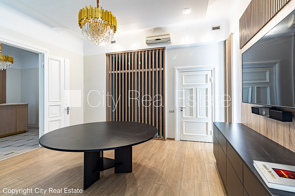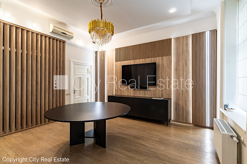 Pagalma māja, renovēta māja, ieeja no pagalma, terase, logi vērsti uz pagalma pusi, logi vērsti mājas abās pusēs, gaisa kondicionēšanas sistēma, viena telpa caurstaigājama, virtuve 5.3 m2, augstie griesti, mainīti radiatori, radiatori ar termoregulatoriem, centrālā apkure, uzstādīti karstā ūdens patēriņa skaitītāji, apkures skaitītāji, individuāla apkures sistēmas uzskaite, apsildāma grīda tualetē, koka stikla pakešu logi, krāsotas sienas, jauna santehnika, parketa grīda, flīžu grīdas segums, tualete 1,6 m2, iebūvēta virtuves iekārta, gaisa kondicionieris, optiskais internets, signalizācija, atbrīvots, slēdzot nomas līgumu, Jums būs jāmaksā par pirmo nomas mēnesi, kā arī jāiemaksā drošības depozīts, CITY REAL ESTATE ID - 497351