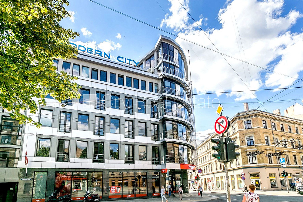 Jaunceltne, fasādes māja, par terases platību apsaimniekošanas maksa nav jāmaksā, labiekārtota apzaļumota teritorija, bruģēts piebraucamais ceļš, vieta automašīnai, iespēja nomāt autostāvvietu, apsargāta teritorija, ir lifts, terase 7,4 m2, logi vērsti uz pagalma pusi, gaisa ventilācijas sistēma, gaisa kondicionēšanas sistēma, telpas izolētas, virtuve, halle, radiatori ar termoregulatoriem, automatizēta apkures sistēma, apkures skaitītāji, individuāla apkures sistēmas uzskaite, sanitārais mezgls atsevišķs, A klases biroju telpas, ir iespēja nomāt lielāku telpu platību, optiskais internets, signalizācija, diennakts apsardze, viedkaršu caurlaides sistēma, minimālais īres termiņš 12 mēneši, uz 2 gadiem, uz 3 gadiem, atbrīvots, līdz lidostai 8 km, stratēģiski izdevīga vieta, līdz dzelzceļa stacijai 800 m, līdz Vecrīgai 1 km, CITY REAL ESTATE ID - 514401