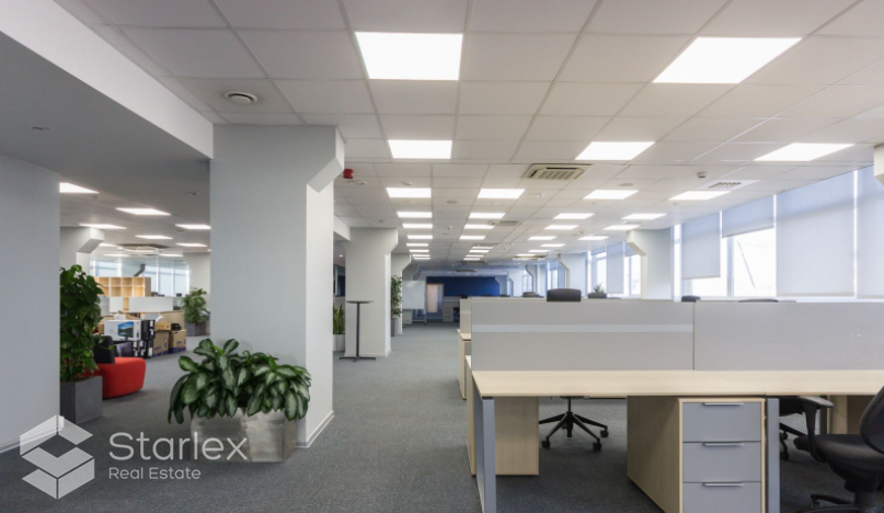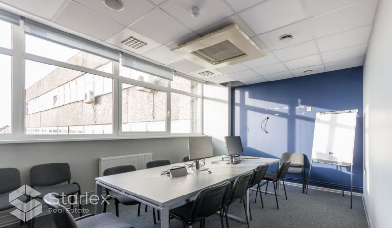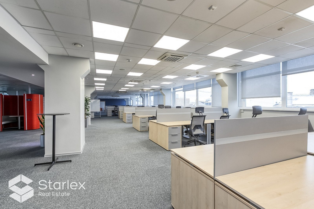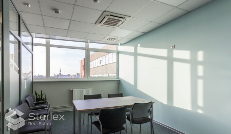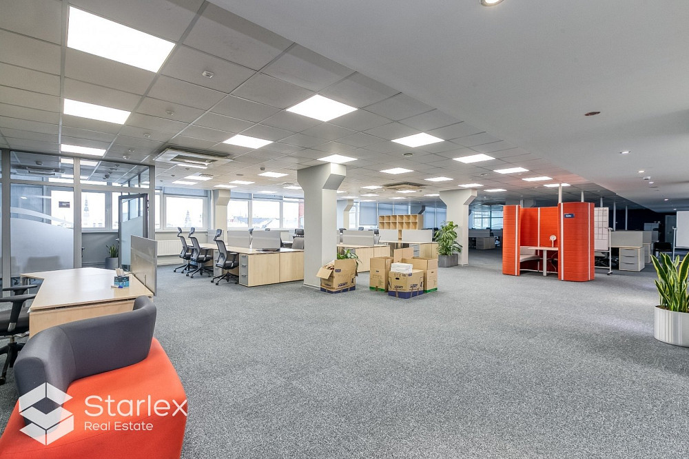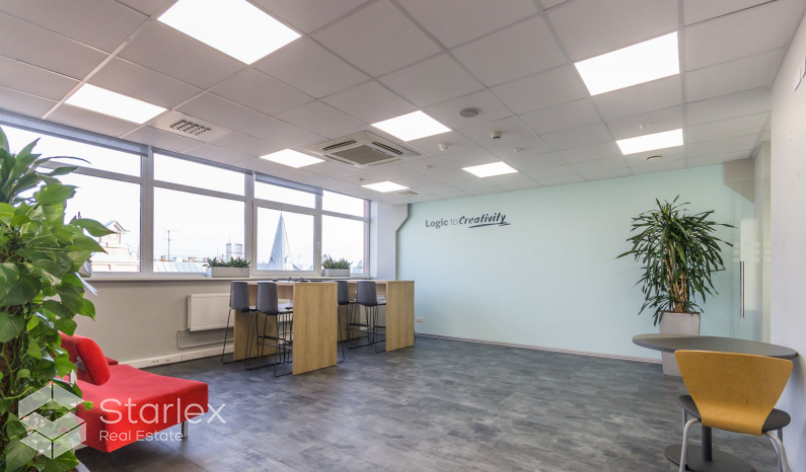 Atvērtā plānojuma birojs ar profesionālai IT kompānijai veidotām sakaru komunikācijām. Telpas ir teicami izgaismotas ar plašiem logiem, kas ir atverami.