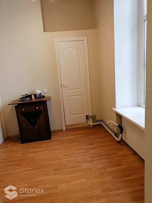 Plānojums: 2 darba telpa, WC koplietošanā ar vairākiem citiem maziem birojiem.