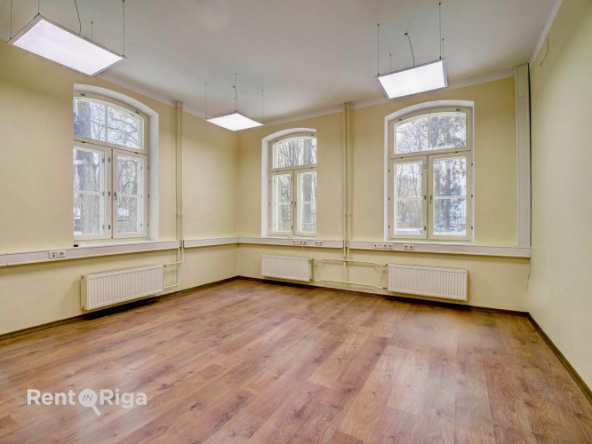 Nomai tiek piedāvāts plašs un funkcionāls birojs renovētā ēkā ar ērtu piekļuvi un attīstītu infrastruktūru. Īpašums atrodas zaļā parka teritorijā, nodrošinot mierīgu darba vidi un dabas tuvumu pat pilsētas centrālā daļā. Birojam ir savs stāvlaukums ar vairākām autostāvvietām, kas iekļautas nomas maksā. Priekšrocības: + Aizņem visu ēkas 1. stāvu, griestu augstums 3,1 m; + Bezmaksas autostāvvietas; + Ēkai ir trīs stāvi un tikai trīs nomnieki; + Birojs aprīkots ar ventilācijas sistēmu; + Pie ēkas pieejams asfaltēts stāvlaukums līdz 30 automašīnām; + Objekts atrodas klusā, zaļā dzīvojamā un biroju rajonā aptuveni 4 km no pilsētas centra un 8 km no lidostas. + Telpu plānojums sastāv no vairākām dažāda izmēra izolētām telpām, kas piemērotas gan individuālam, gan komandas darbam.