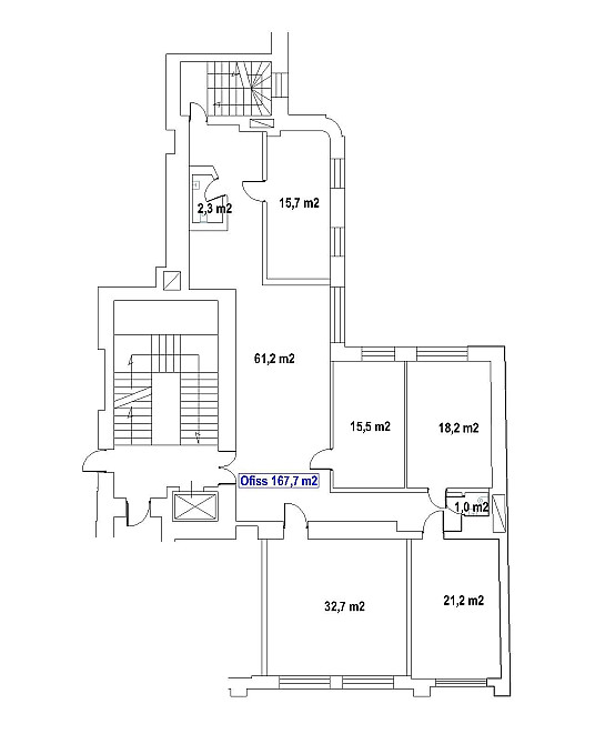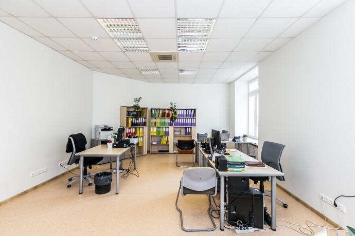 Plānojums: 4 izolētas darba telpas platībā no 8.6 kv.m. līdz 36.8 kv.m, plaša 38.4 kv.m. recepcijas/sekretāres priekštelpa, WC.