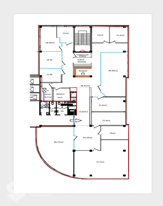 Gaišas, modernas A klases biroja telpas.Augstas klases biroju ēka.Ēkā ir piespiedu ventilācijas un gaisa kondicionēšanas sistēma, videonovērošana. Biroji gaiši, labā stāvoklī.Darbinieku un klientu ērtībām ēkas 1. stāvā ir kafejnīca.Ērta piekļūšana ar privāto transportu. Ļoti ērta sabiedriskā transporta infrastruktūra.Pie ēkas plaša bezmaksas auto stāvvieta.6. stāvs - 488 m2 birojs. Sadalīts vairākos kabinetos - 13 telpas. Sava virtuve. Lielisks skats uz pilsētas centra daļu. Biroju iespējams dalīt uz pusēm.Telpu plānojumu un iekšējo apdari iespējams pielāgot nomnieka vajadzībām.Nomas maksa: 10 Euro/kv.m. + 2,5 Euro/kv.m. apsaimniekošana + komunālie maksājumi.