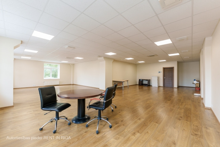 Gaišs birojs kvalitatīvi renovētā ēkā. Taisnstūra formas birojs. Pie telpu ieejas durvīm ir koplietošanas WC un virtuve. + telpas ir aprīkotas ar piespiedu ventilāciju un ar gaisa dzesēšanas iekārtām; + pieejams optiskais internets un signalizācija; + ēkā ir sava apkures sistēma; + bezmaksas autostāvvieta pagalmā; + tuvumā daudz sabiedriskās ēdināšanas uzņēmumu; + pieejamas noliktavas telpas; + 10 minūšu braucienā līdz Rīgas centram; + tuvumā gan Rīgas satiksmes sabiedriskā transporta pieturas, gan pasažieru vilciena pietura. Apsaimniekošanas maksa (1EUR/m2) Drošības depozīts ir 1 mēnešu nomas maksa bez PVN. Šajā ēkā piedāvājumā arī citi biroji 40-105 m2 platībās.