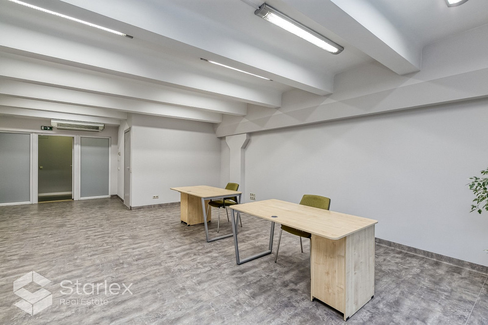 Konkrētais birojs ir ar platību 106 m2. Tā nomas maksa ir 5.5 eur/m2 un papildus maksa par apsaimniekošanu un komunālajiem pakalpojumiem.
