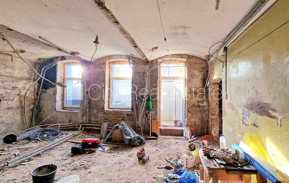 Zeme īpašumā, fasādes māja, renovēta māja, labiekārtota apzaļumota teritorija, teritorijas iebrauktuves vārti aprīkoti ar automatizētu atvēršanās un aizvēršanās sistēmu, ieeja no ielas un pagalma, cokolstāvs, puspagrabs, logi vērsti uz ielas pusi, augstie griesti, gāzes apkure, automatizēta apkures sistēma, iespēja pārplānot, pelēkā apdare, betona grīdas segums, vairāki sanitārie mezgli, caurstaigājamas izolētas telpas, ir iespēja iegādāties lielāku platību, atbrīvots, nav apgrūtinājumu, līdz parkam 30 m, stratēģiski izdevīga vieta, līdz Vecrīgai 150 m, komisijas maksa par starpniecības pakalpojumiem nav jāmaksā, CITY REAL ESTATE ID - 515544