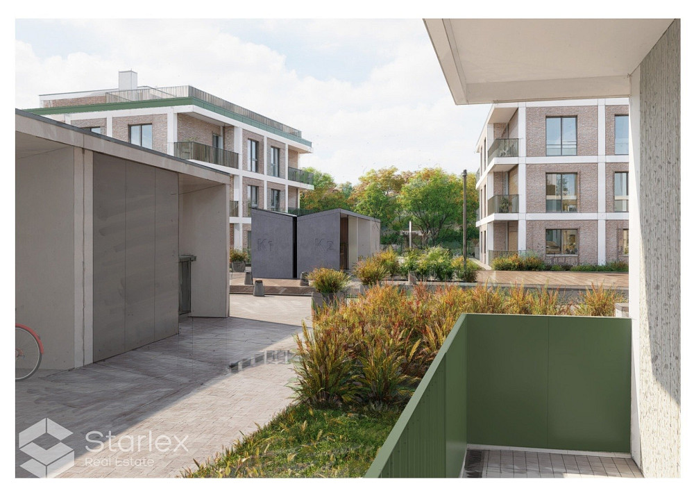 Mežs un zaļās zonas tieši blakus mājām - tīrs gaiss, putnu dziesmas un vieta rīta skrējienam.Pirmajā stāvā atrodas 7 nelieli dzīvokļi - viens studijas tipa dzīvoklis (35 kv. m) un seši vienistabas dzīvokļi (60 kv. m). Otrajā stāvā atrodas 6 trīs tipu dzīvokļi - divi studijas tipa dzīvokļi (35 kv. m), divi vienistabas dzīvokļi (60 kv. m) un divi divistabu dzīvokļi (80 kv. m). Trešajā stāvā atrodas četri 90 kv. m dzīvokļi ar divām guļamistabām, kur saglabāta arī iespēja atdalīt trešo guļamistabu. Pirmā stāva dzīvokļiem ir projektētas plašas terases, bet otrā un trešā stāva dzīvokļiem - balkoni.