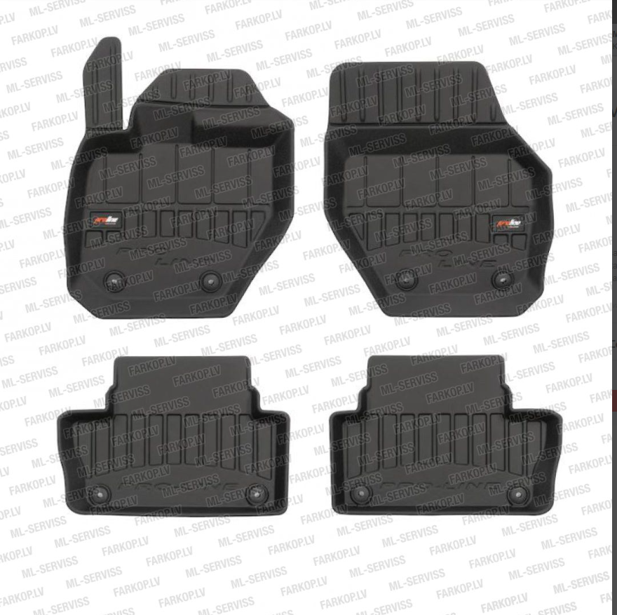 Pieejami komplekti priekšā/aizmugurē, kā arī bagāžnieka paklāji.