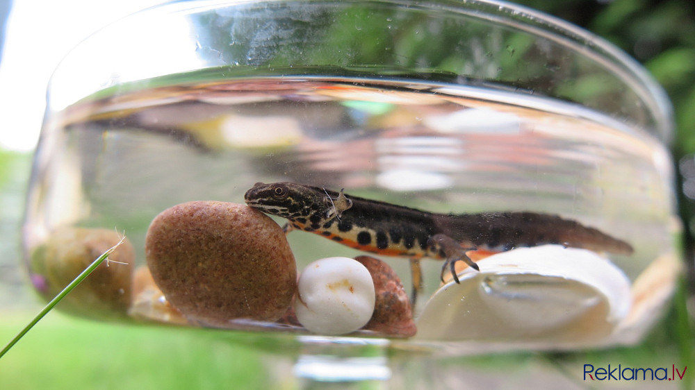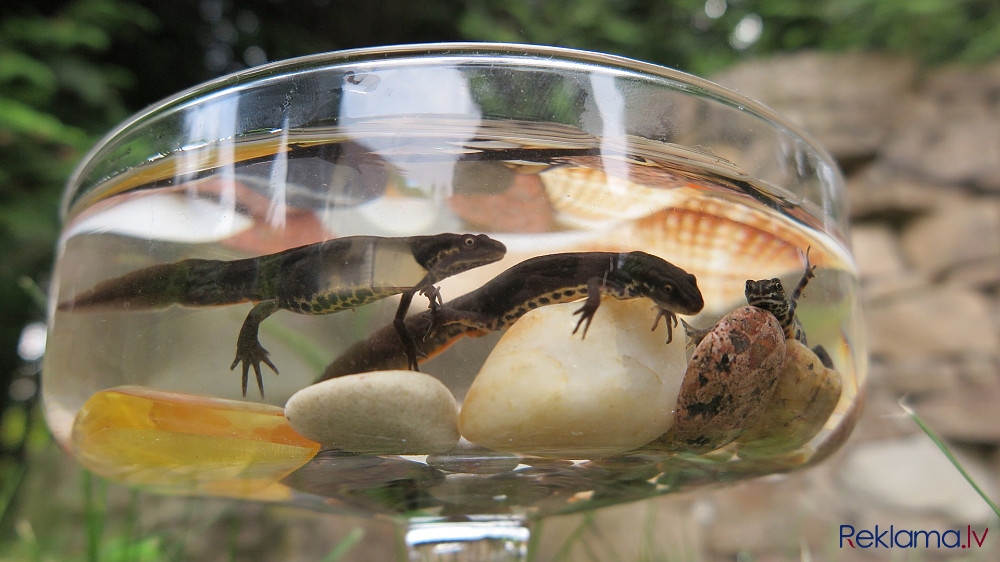 тритоны из собственного садового пруда, могут жить как в природе так и в аквариуме.