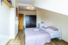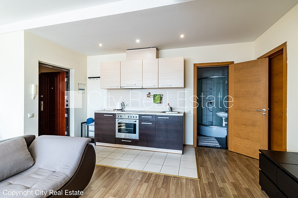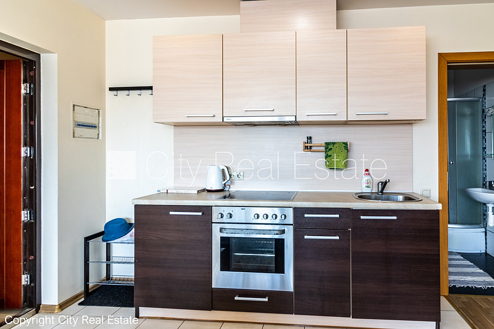 Pagalma ēka, slēgts pagalms, vieta automašīnai, ieeja no pagalma, mansards, ir lifts, plašs skats no loga, guļamistabu skaits 1 gab., viena istaba izolēta, studio tipa, virtuve apvienota ar viesistabu, slīpie griesti, centrālā apkure, plastikāta stikla pakešu logi, jauna santehnika, lamināta parketa grīda, flīžu grīdas segums, sanitārais mezgls apvienots, dušas kabīne, iebūvēta virtuves iekārta, izvelkamais stūra dīvāns, divguļamā gulta, viesistabas galds, atpūtas krēsli, skapis, kumode, ledusskapis, elektriskā plīts, cepeškrāsns, veļas mašīna, gleznas, spilveni, segas, gultas veļa, trauki, uz vienu mēnesi, uz diviem mēnešiem, uz trīs mēnešiem, atbrīvots, līdz parkam 50 m, stratēģiski izdevīga vieta, slēdzot īres līgumu, Jums būs jāmaksā par pirmo īres mēnesi , kā arī jāiemaksā drošības depozīts, izvēloties šo īpašumu, komisijas maksa par starpniecības pakalpojumiem ir vienāda ar vienu pusi (50%) no šī īpašuma viena mēneša īres maksas, Jums būs jāmaksā avansā visa summa par minimālo īres laiku, CITY REAL ESTATE ID - 515153