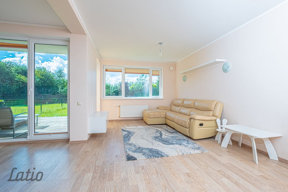 Mājas pirmajā stāvā ir izvietota plaša virtuve, viesistaba, guļamistaba, saimniecības telpa, tualete un plaša āra terase.