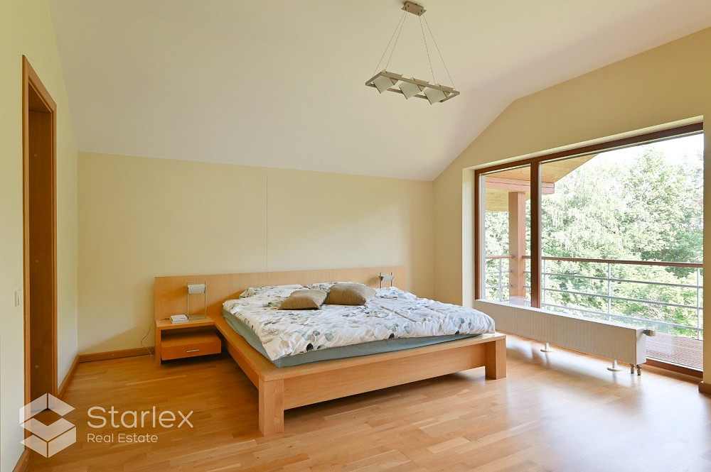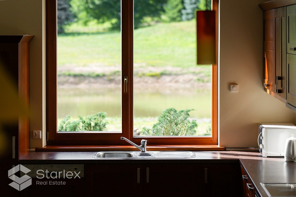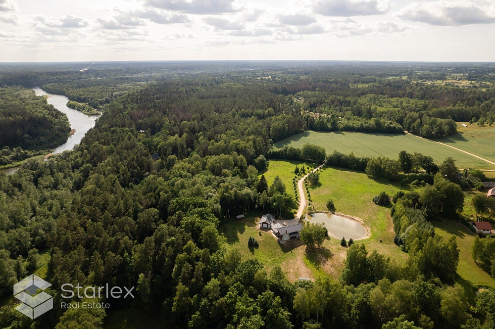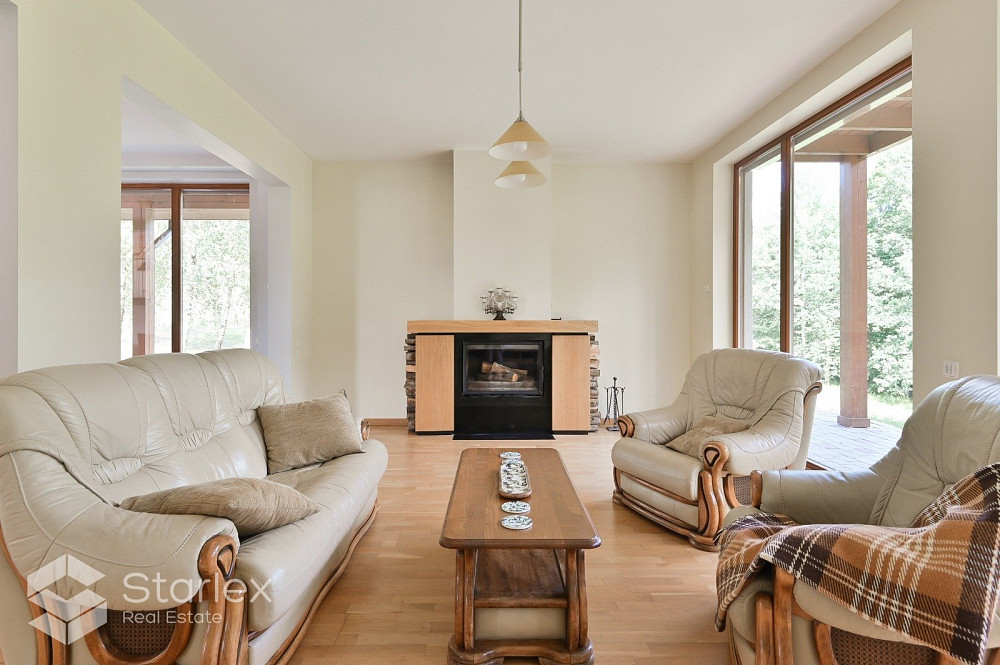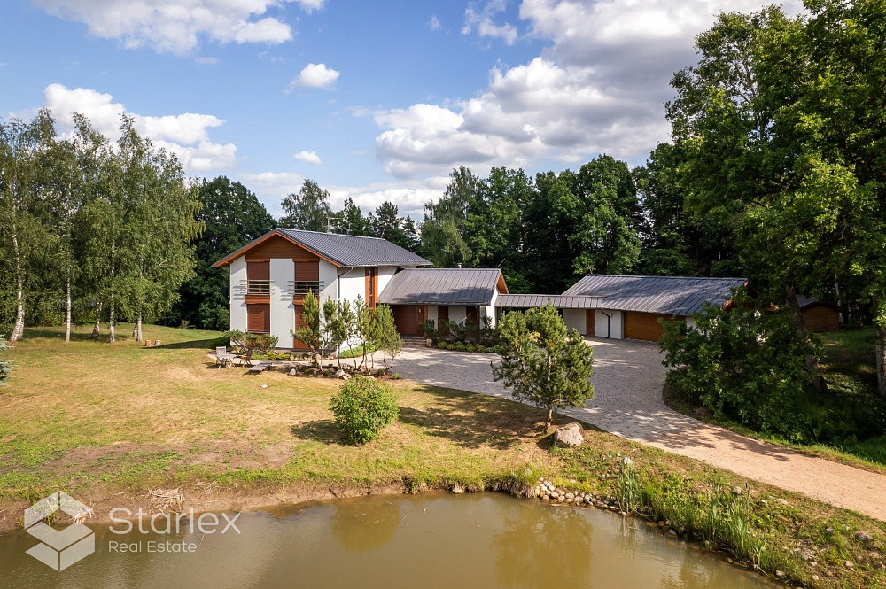 Privātmāja ar skaistu, iekoptu, ainavisku teritoriju. Piedāvājumā uz pirkšanu plaša 2-stāvīga privātmāja ar iekoptu teritoriju un 5.1h zemi blakus upei un savu dīķi. Mājā ir 5 istabas, 4 no tām guļamistabas (vienā no tām plaša garderobes telpa), dzīvojamā platība ar skaistu skatu un kamīnu, virtuves zona nedaudz nodalīta. 2 vanaas istabas, viesu labierīcības, sauna, palīgtelpa, plaša garāža 2 automašīnām. Iebūvēta virtuves iekārta ar sadzīves tehniku. Papildus info par komunālajiem maksājumiem - telefoniski. Apkure- dīzeļdegviela un nesen uzstādīti saules paneļi, kas ekonomēs gan apkures , gan elektrības izmaksas. ierīkots arī gaisa siltumsūknis, 2km zemes piebraucamais ceļš labā stāvoklī, vārti, signalizācija, pilnībā visai mājai apkārt elektriskās žalūzijas. Vieta, kura Jūs neatstās vienaldzīgu, lai baudītu mieru un klusumu.Māja klusuma un dabas cienītājiem. Māja atrodas skaistā un ainaviskā vietā ar plašu teritoriju, Gaujas Nacionālā parka teritorijā, kalnā, no kura paveras skats uz Gaujas senleju.