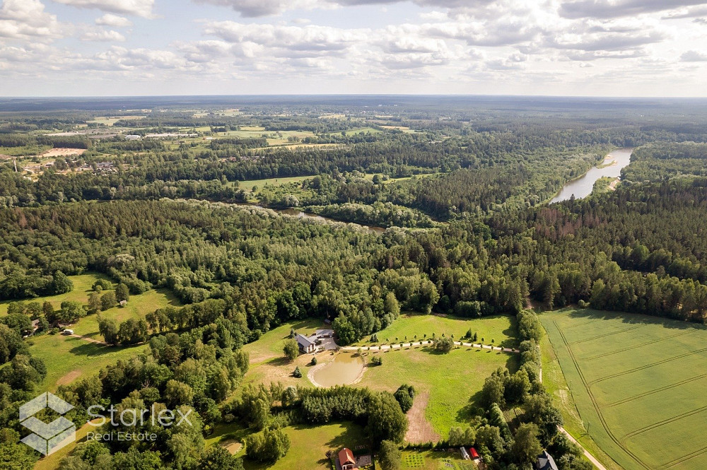 Pie mājas plaša teritorija - 5 ha. Zemes (grants) piebraucamais ceļš.