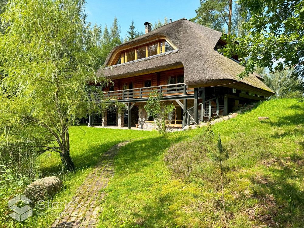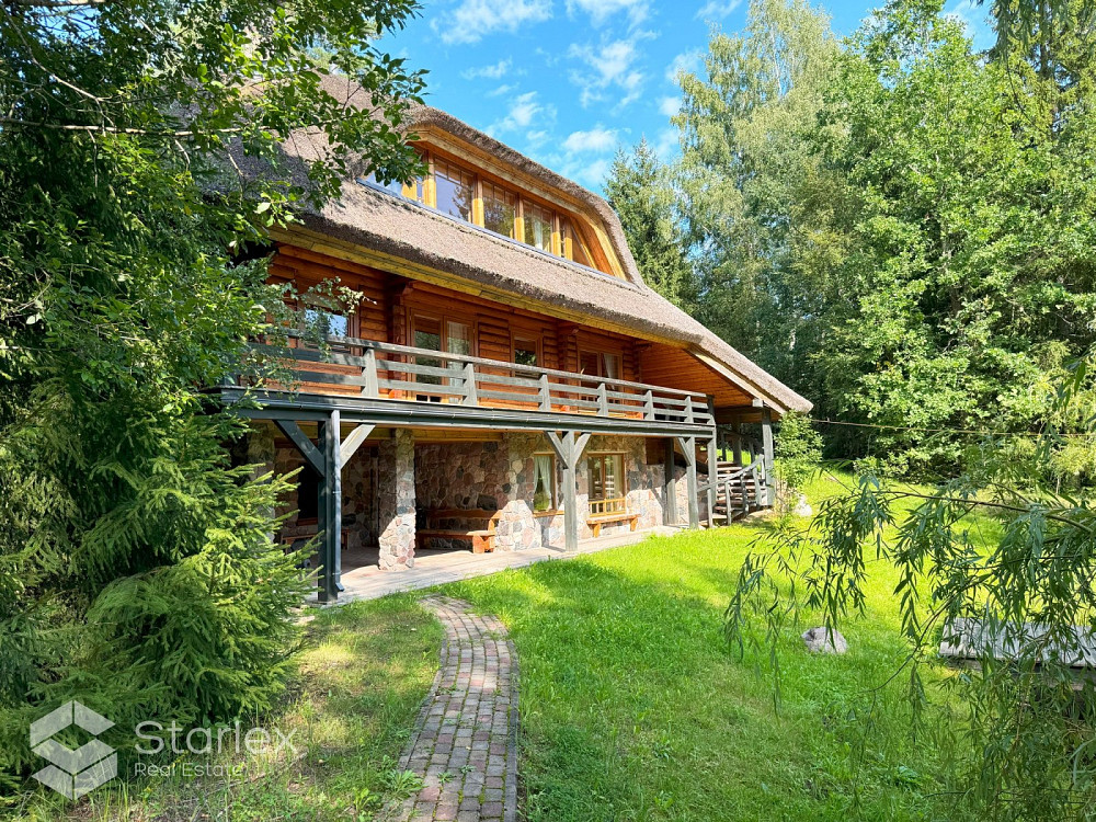 Pārdod 3-stāvu guļbaļķu savrupmāju ar 1.32 ha zemes gabalu un privātu ezeru gleznainajā Amatciemā. M 360 000 EUR