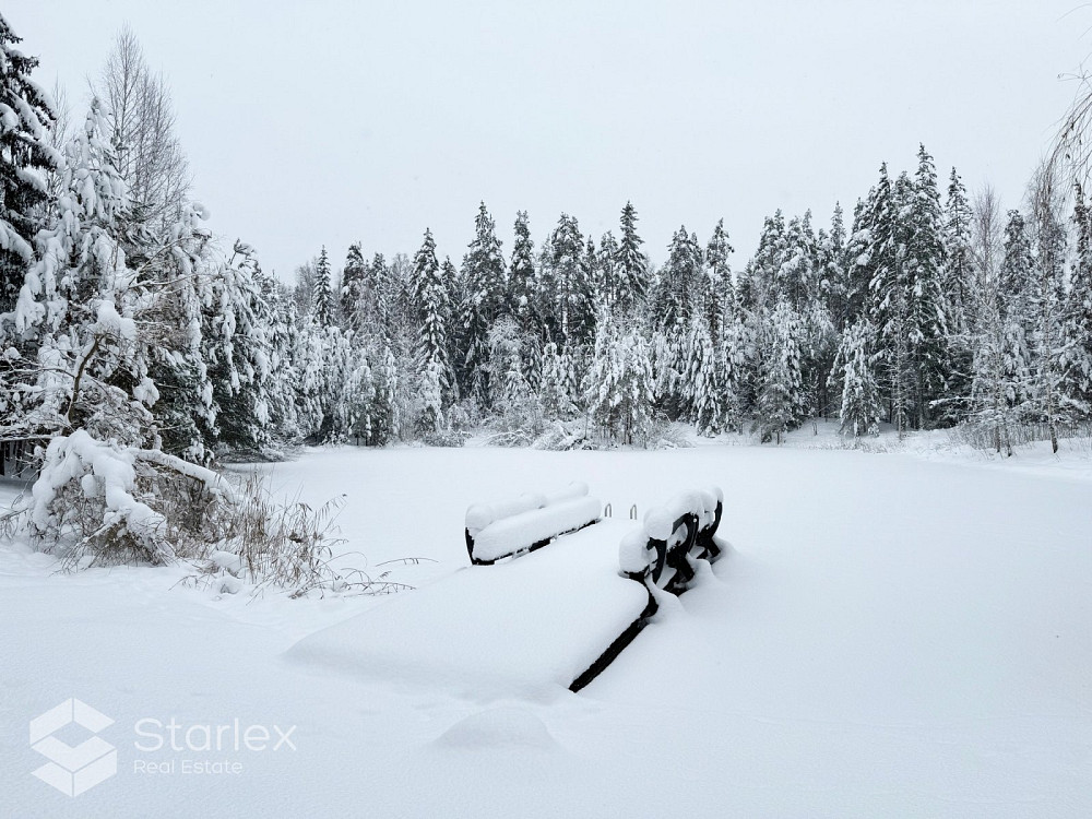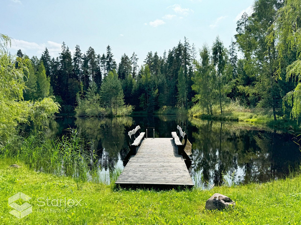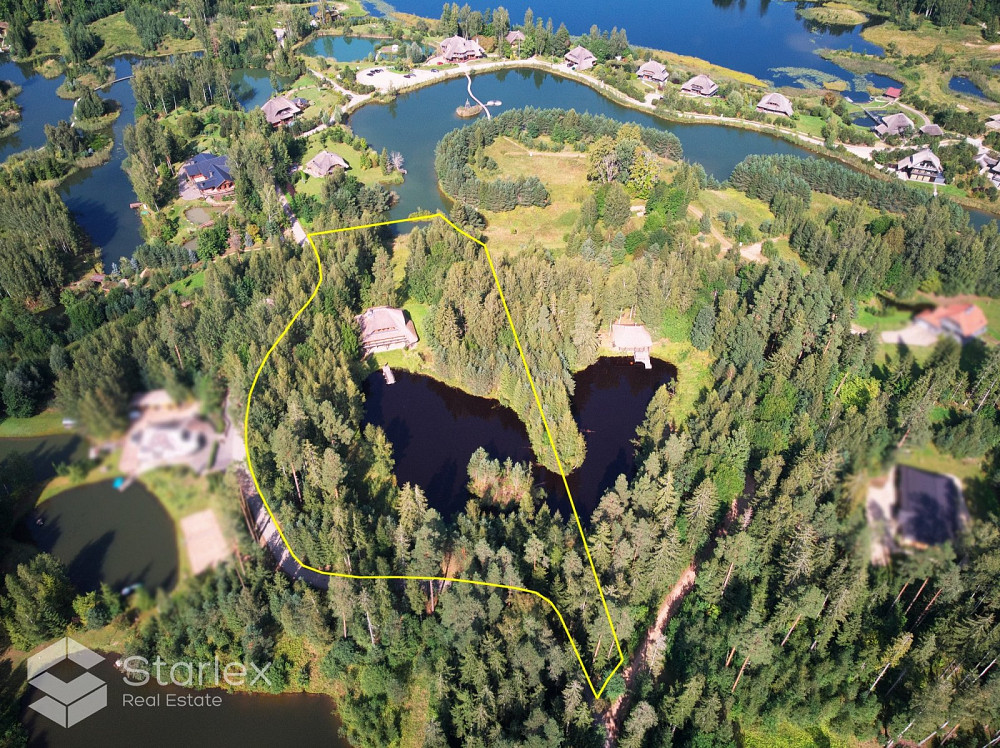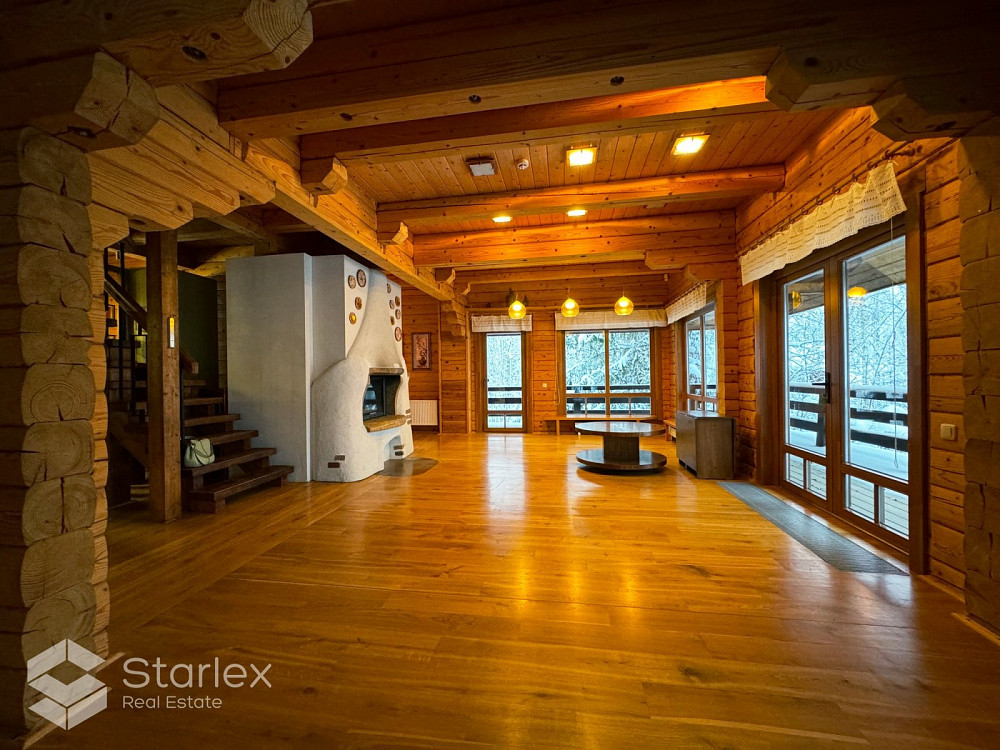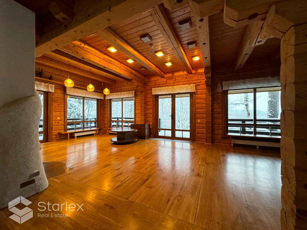 Pārdod 3-stāvu guļbaļķu savrupmāju ar 1.32 ha zemes gabalu un privātu ezeru gleznainajā Amatciemā. M